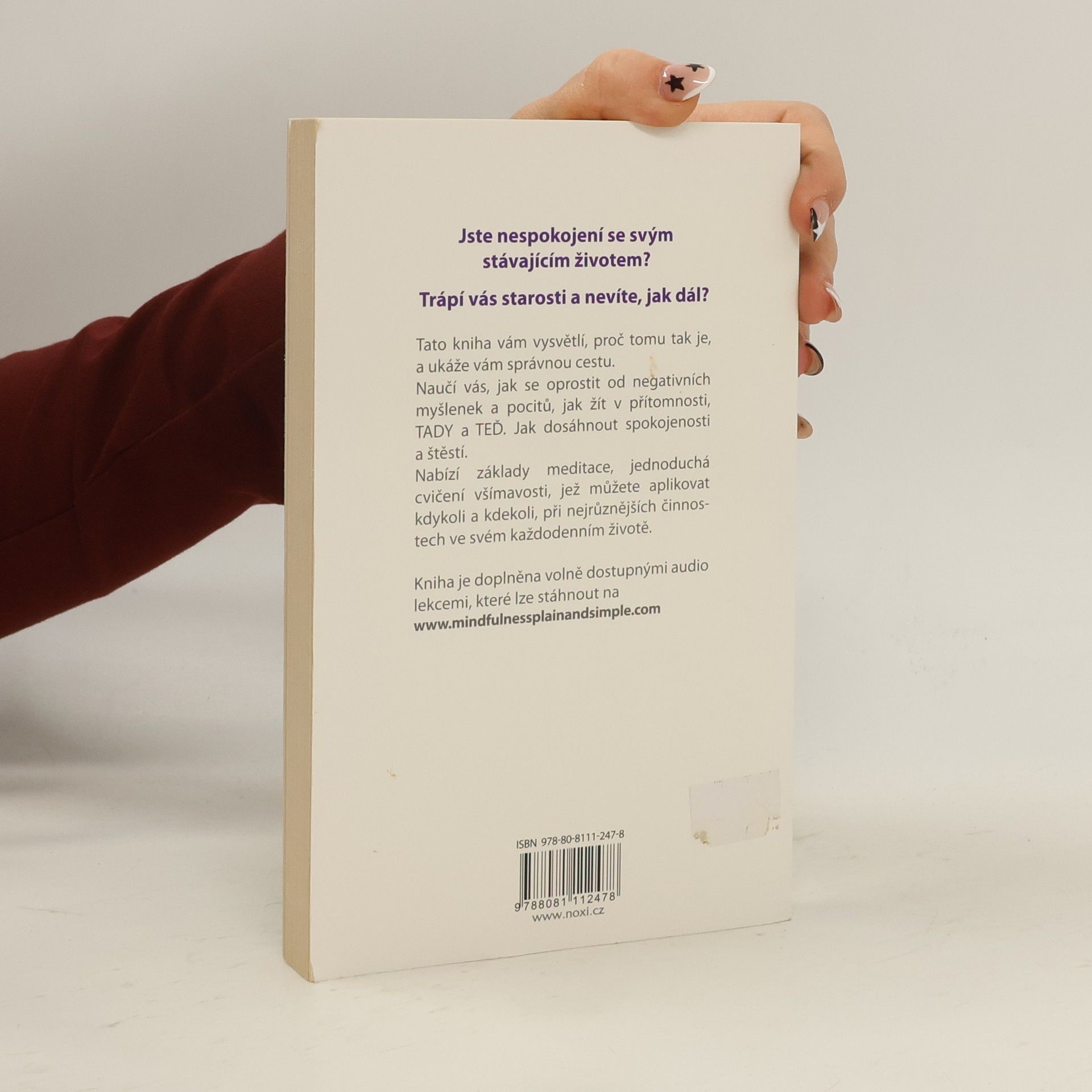 Jste nespokojení se svým stávajícím životem? Trápí vás starosti a nevíte, jak dál? Tato kniha vám vysvětlí, proč tomu tak je, a ukáže vám správnou cestu. Naučí vás, jak se oprostit od negativních myšlenek a pocitů, jak žít v přítomnosti, TADY a TEĎ. Jak dosáhnout spokojenosti a štěstí. Nabízí základy meditace, jednoduchá cvičení všímavosti, jež můžete aplikovat kdykoli a kdekoli, při nejrůznějších činnostech ve svém každodenním životě.