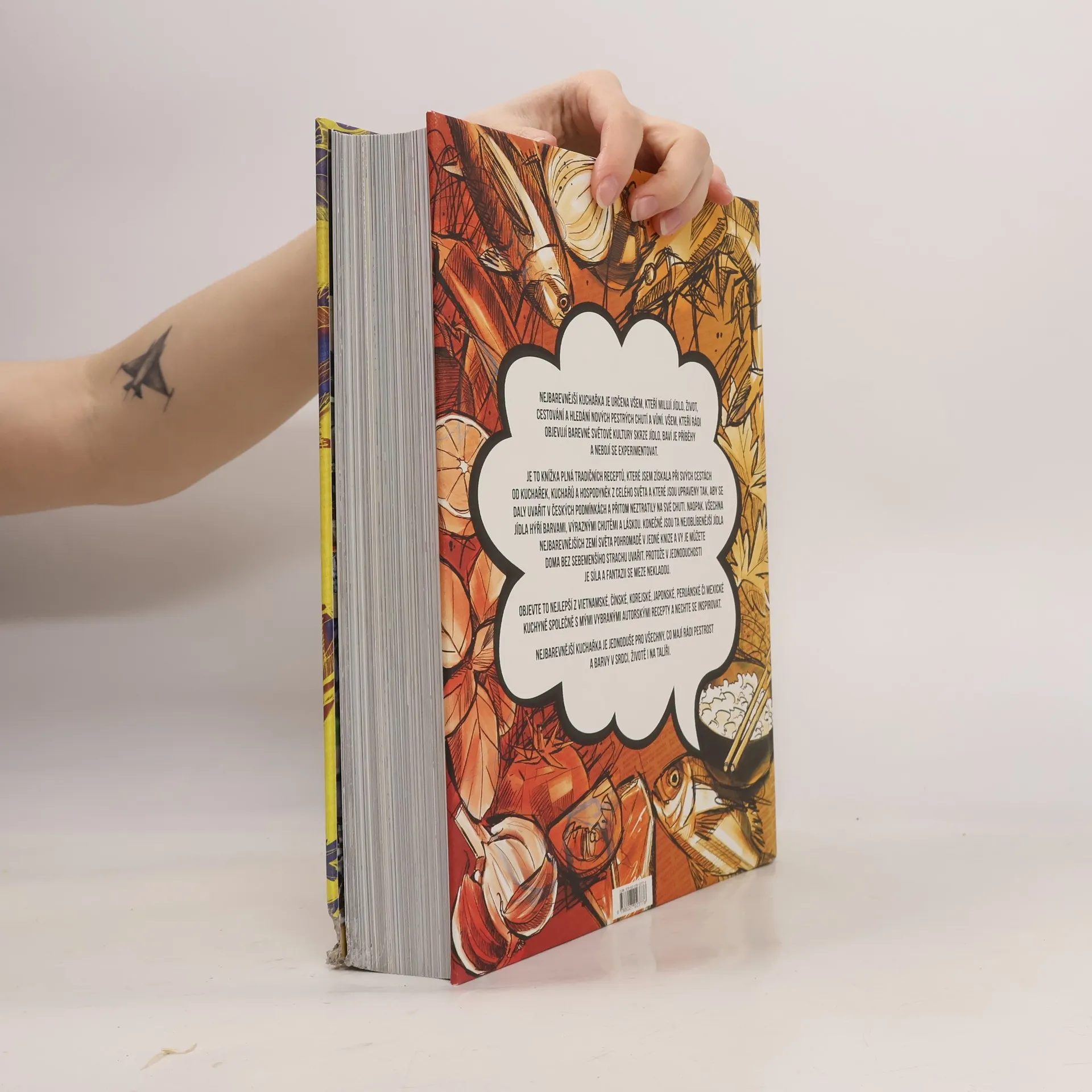 Moje první kniha je určena všem, kteří milují jídlo, život, cestování a hledání nových pestrých chutí a vůní. Všem, kteří rádi objevují barevné světové kultury skrze jídlo, baví je příběhy a nebojí se experimentovat. Je to knížka plná tradičních receptů, které jsem získala při svých cestách od kuchařek, kuchařů a hospodyněk z celého světa a které jsou upraveny tak, aby se daly uvařit v českých podmínkách a přitom neztratily na své chuti. Naopak. Všechna jídla hýří barvami, výraznými chutěmi a láskou. Konečně jsou ta nejoblíbenější jídla nejbarevnějších zemí světa pohromadě v jedné knize a vy je můžete doma bez sebemenšího strachu uvařit. Protože v jednoduchosti je síla a fantazii se meze nekladou. Objevte to nejlepší z vietnamské, čínské, korejské, japonské, peruánské či mexické kuchyně společně s mými vybranými autorskými recepty a nechte se inspirovat. Nejbarevnější kuchařka je jednoduše pro všechny, co mají rádi pestrost a barvy v srdci, životě i na talíři.
