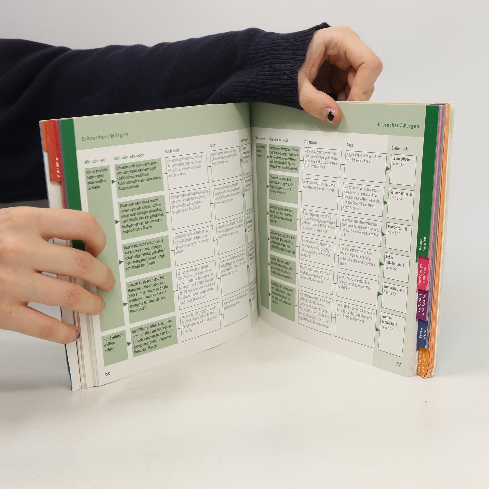 Balou zieht plötzlich das linke Bein nach und Maya verweigert jegliches Futter. Jeden Hundebesitzer beschäftigen in solchen Fällen viele Fragen: Was hat mein Hund? Muss er zum Tierarzt? Was kann ich für ihn tun? Die Tierärztin Dr. Heidi Kübler hilft Ihnen in diesem Ratgeber, die Krankheit Ihres Vierbeiners zu erkennen und gezielt die richtigen Maßnahmen zu ergreifen. Anhand der übersichtlich in ein Kopf-Fuß-Schema eingeteilten Krankheitssymptome Ihres Hundes, können Sie schnell und zuverlässig seine Erkrankung bestimmen. In ausführlichen Porträts werden die Krankheiten näher beschrieben und Sie erfahren alles über die richtigen Schritte zur Heilung. Das Erste-Hilfe-Kapitel hilft Ihnen im Notfall Ruhe zu bewahren und trotzdem schnell zu handeln. Alles Wissenswerte zur Gesundheitsvorsorge vermittelt Ihnen der Quickfinder Hundekrankheiten in einem allgemeinen Kapitel: von der richtigen Ernährung, wichtigen Impfungen bis hin zum täglichen Gesundheitscheck.