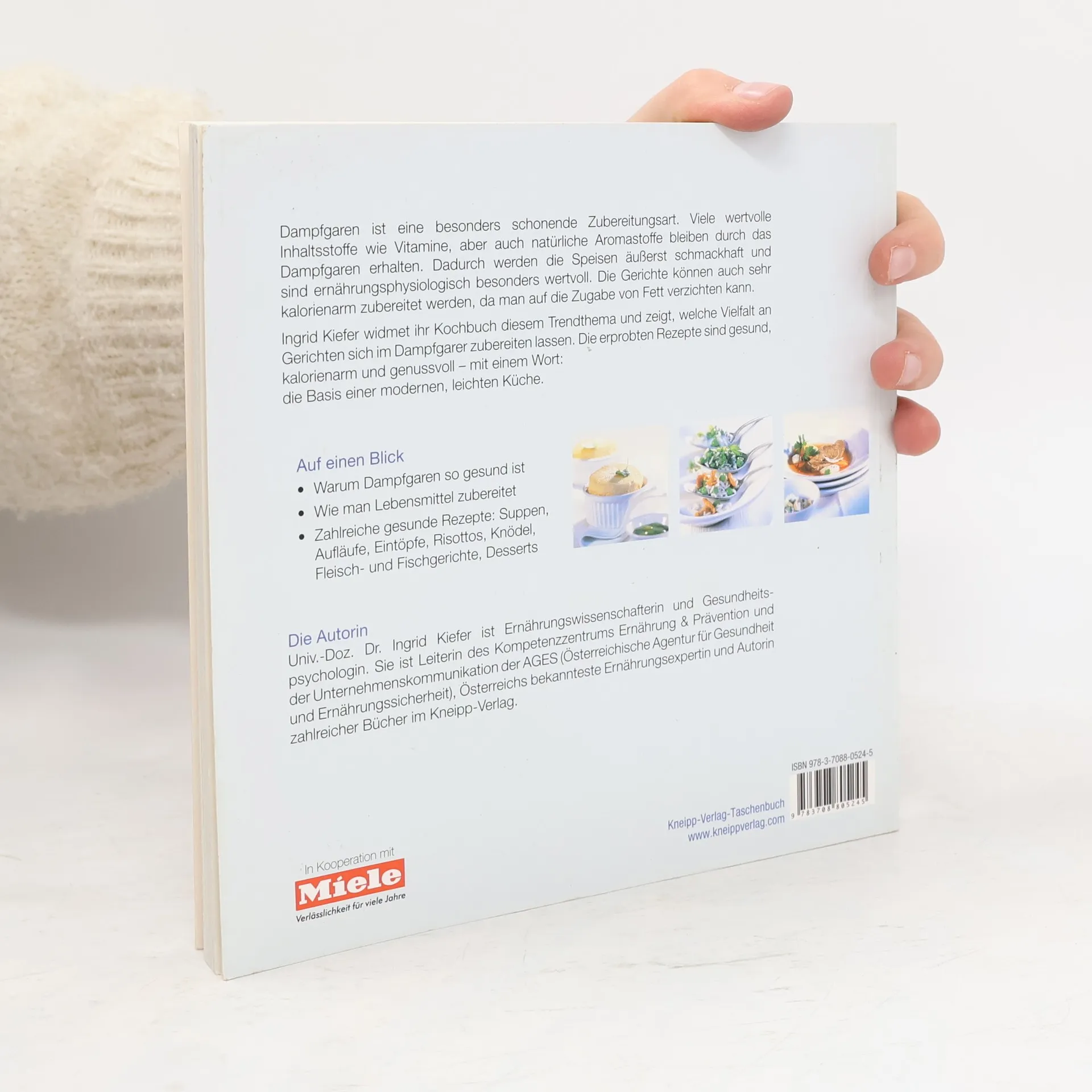 Dampfgaren ist eine besonders schonende Zubereitungsart. Sie hat ihren Ursprung in der chinesischen Küche und ist seit langer Zeit bekannt. Viele wertvolle Inhaltsstoffe wie Vitamine, aber auch natürliche Aromastoffe bleiben durch das Dampfgaren erhalten. Dadurch werden die Speisen äußerst schmackhaft und sind ernährungsphysiologisch besonders wertvoll. Die Gerichte können auch sehr kalorienarm zubereitet werden, da man auf die Zugabe von Fett verzichten kann. Ingrid Kiefer widmet ihr neues Kochbuch diesem Trendthema und zeigt, welche Vielfalt an Gerichten sich im Dampfgarer zubereiten lassen. Die erprobten Rezepte sind gesund, kalorienarm und genussvoll – mit einem Wort: die Basis einer modernen, leichten Küche.