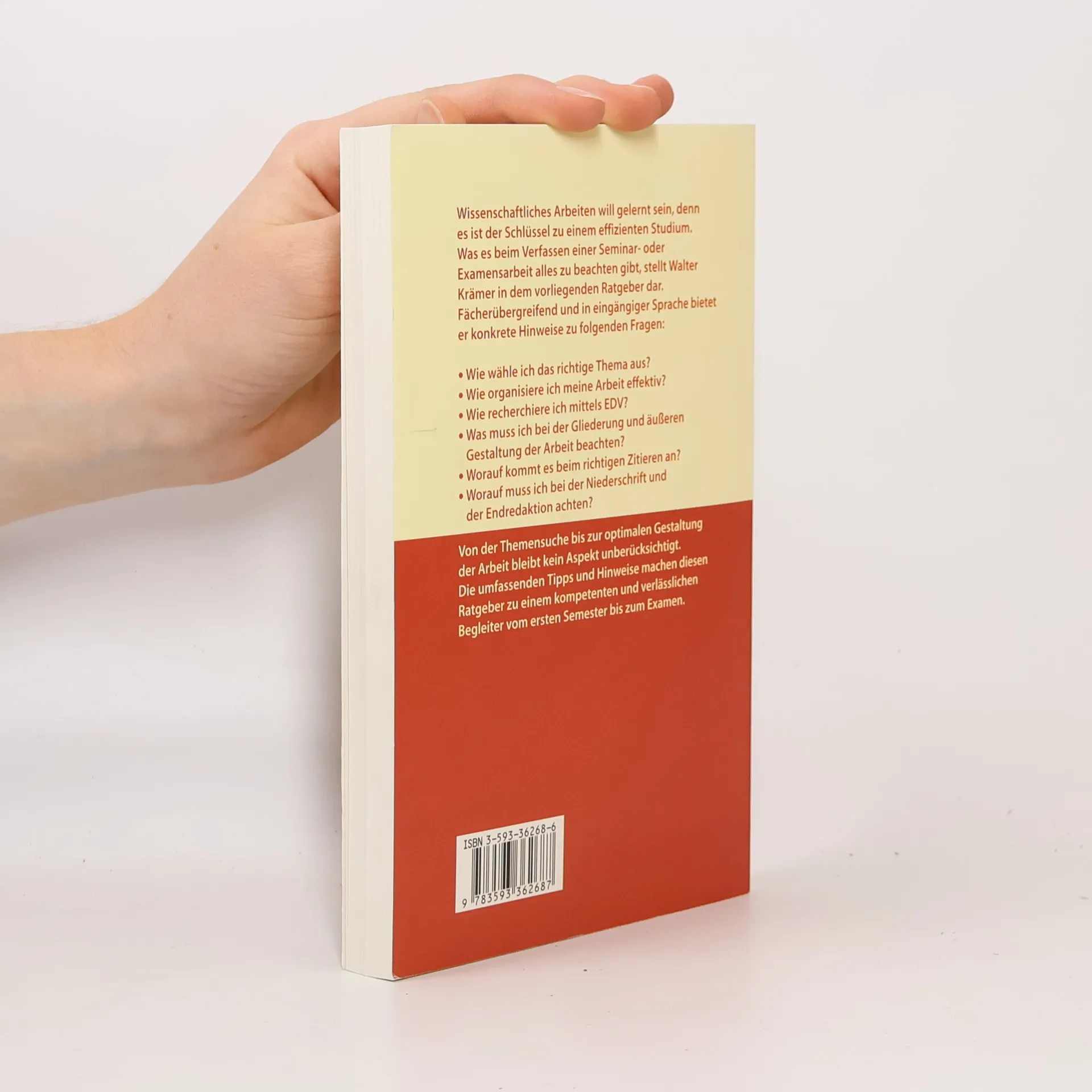 Spätestens beim Verfassen der ersten Seminararbeit stehen viele Studierende vor großen Schwierigkeiten. Denn noch immer hängt ein erfolgreiches Studium hauptsächlich von der Benotung schriftlicher Hausarbeiten ab. Wie schreibe ich eine Seminar- oder Examensarbeit? ist die erweiterte und aktualisierte Neuauflage eines Standardwerks zu allen Fragen der schriftlichen wissenschaftlichen Arbeit, das vor allem für Studierende der Sozial-, Geistes- und Wirtschaftswissenschaften geeignet ist. Walter Krämer befasst sich in diesem Ratgeber mit allen Problemen, die beim Verfassen von Seminar- oder Examensarbeiten auftauchen: ° Wie wähle ich das richtige Thema aus? ° Wie organisiere ich meine Arbeit effektiv? ° Wie recherchiere ich mittels EDV? ° Was muss ich bei Gliederung und äußerer Form beachten? ° Worauf kommt es beim richtigen Zitieren an? ° Worauf muss ich bei der Niederschrift und der Endredaktion achten? Walter Krämers umfassendes Buch begleitet Studierende kompetent und verlässlich vom ersten Semester bis zum Examen. Autor: Walter Krämer, Autor des Bestsellers So lügt man mit Statistik, ist Professor für Wirtschafts- und Sozialstatistik an der Universität Dortmund. Neben zahlreichen weiteren Büchern ist im Campus Verlag von ihm auch das Buch Statistik verstehen (3. Aufl. 1998) erschienen.
