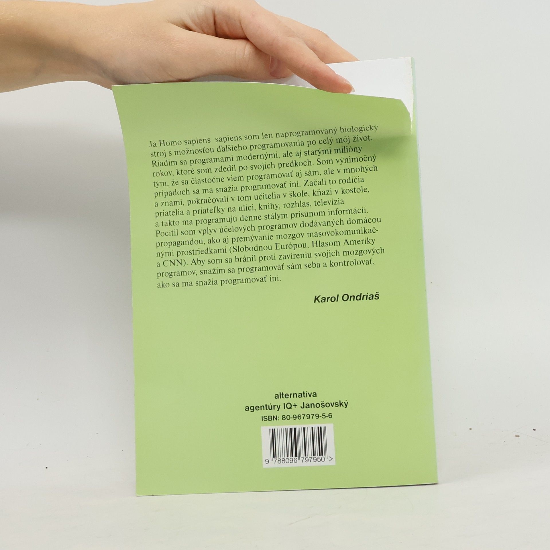 Populárno-vedecká knižka prináša argumenty, ktoré dokazujú, že človek je len programovaný biologický stroj. Hovorí o základoch správania človeka a jeho mozgu, o vytváraní ilúzie viery a ilúzie pravdy, ako aj o princípoch premývania mozgov.