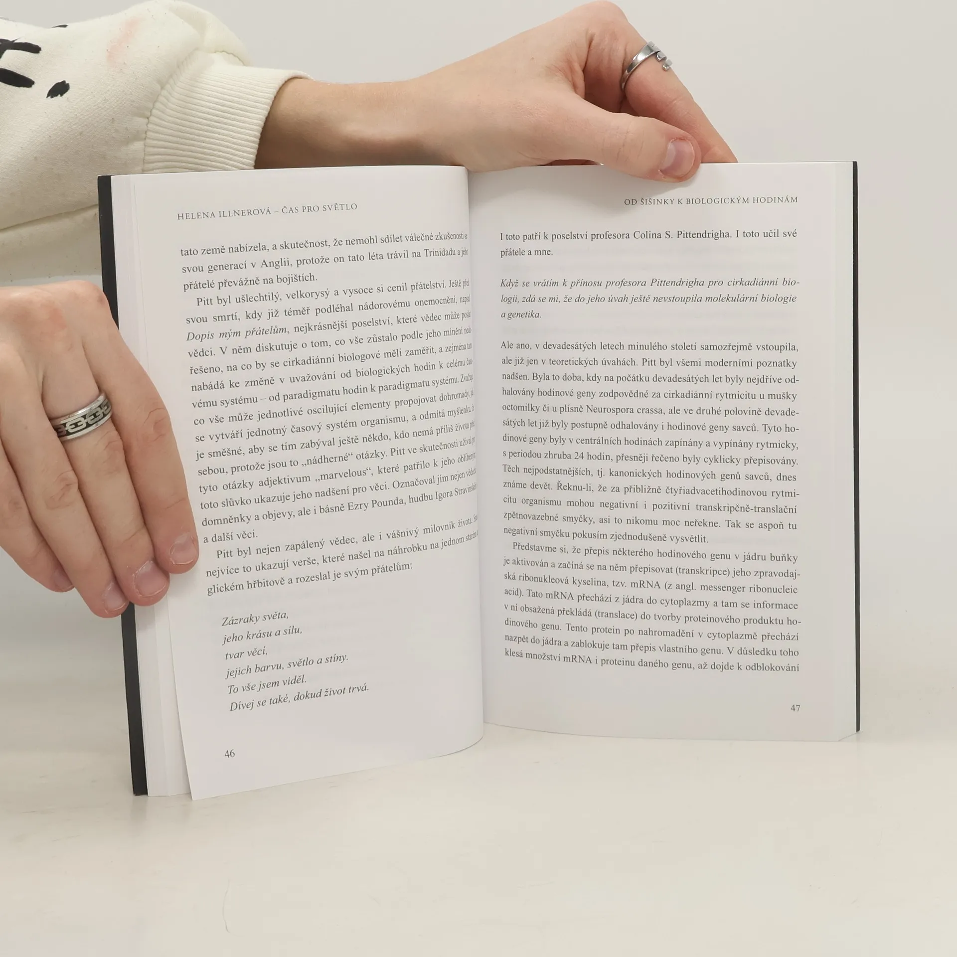 Prof. Helena Illnerová je přední česká fyzioložka a biochemička, bývalá předsedkyně AV ČR, České učené společnosti, České komise při UNESCO aj. Vedle aktivit spojených s vědou působí i na veřejnosti. V 70. a 80. letech založila a vedla turistický klub, dodnes se angažuje ve skautském hnutí, v roce 2008 kandidovala v senátních volbách za Stranu zelených. Dlouhodobě se aktivně věnuje popularizaci vědy, roli vzdělání ve společnosti, ale také otázkám etiky. Rozhovor, který s ní zasvěceně vede její profesní kolega, prof. Pavel Kovář, mapuje její život od rodinného zázemí a osobnostního formování po vědecké a veřejné působení. Dotýká se nejen otázek spojených s vědou a vzděláním v naší společnosti, ale také otázek hodnot, výchovy, úcty k tradici.
