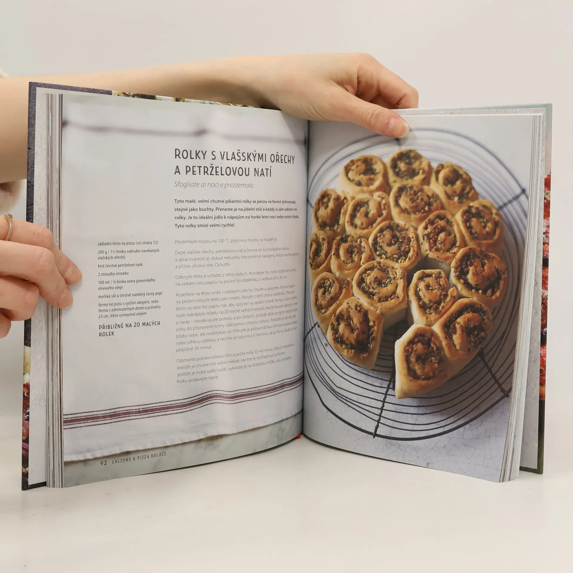 Pizza je nejoblíbenější fastfoodové jídlo na světě. Díky starým i moderním receptům, které najdete v této knize, můžete ve své troubě připravit lahodnou pizzu, calzone nebo focacciu. Kromě toho se naučíte připravit i další výborné italské pečivo. Pro skutečné labužníky je pec na dřevo ideální, ale k přípravě skvělé pizzy stačí základní kuchyňské náčiní, trouba a vaše ruce! Kniha obsahuje důležité informace o pizze a základní postupy její přípravy, které vás jistě povzbudí k tomu, abyste si vlastní pizzu upekli. Najdete zde podrobné pokyny pro přípravu základního těsta, kváskového těsta a bezlepkových variant. V kapitole o pizzách se silnějším a tenkým těstem objevíte pizzu Margheritu, pizzu s karamelizovanou červenou cibulí, kapary a olivami, pizzu s kimči a masovými kuličkami, pizzu z quinoy se sýrem burrata a bramborovou pizzu bez lepku. Kapitola o focacciích přináší různé varianty, včetně focaccie s fíky a prosciuttem nebo s ndujou a bazalkovo-citronovým olejem. Nechybí ani sladké verze. Zkuste calzone, jako je calzone alla parmigiana, a minipizzy s kozím sýrem a pestem nebo malé plněné muffiny.