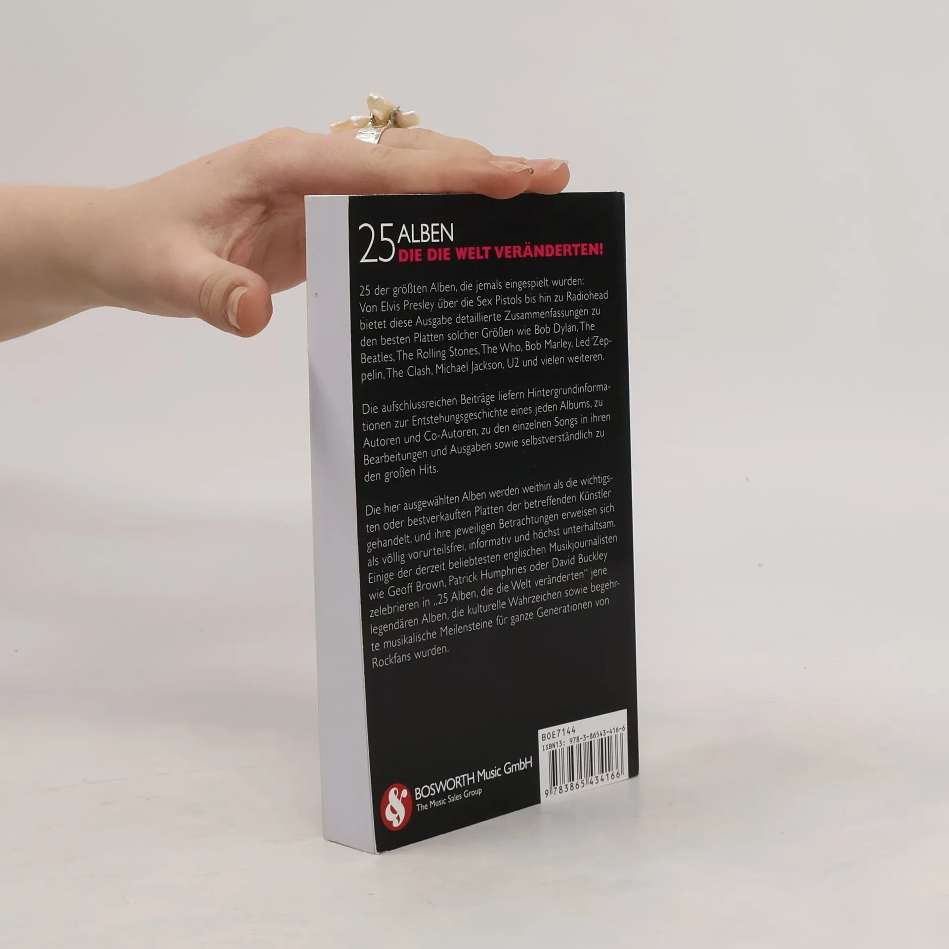 25 der größten Alben, die jemals eingespielt wurden: Von Elvis Presley über die Sex Pistols bis hin zu Radiohead bietet diese Ausgabe detaillierte Zusammenfassungen zu den besten Platten solcher Größen wie Bob Dylan, The Beatles, The Rolling Stones, The Who, Bob Marley, Led Zeppelin, The Clash, Michael Jackson, U2 und vielen weiteren. Die aufschlussreichen Beiträge liefern Hintergrundinformationen zur Entstehungsgeschichte eines jeden Albums, zu Autoren und Co-Autoren, zu den einzelnen Songs in ihren Bearbeitungen und Ausgaben sowie selbstverständlich zu den großen Hits. Die hier ausgewählten Alben werden weithin als die wichtigsten oder bestverkauften Platten der betreffenden Künstler gehandelt, und ihre jeweiligen Betrachtungen erweisen sich als völlig vorurteilsfrei, informativ und höchst unterhaltsam. Einige der derzeit beliebtesten englischen Musikjournalisten wie Geoff Brown, Patrick Humphries oder David Buckley zelebrieren in '25 Alben, die die Welt veränderten' jene legendären Alben, die kulturelle Wahrzeichen sowie begehrte musikalische Meilensteine für ganze Generationen von Rockfans wurden. Originaltitel '25 Albums That Rocked The World' von Omnibus Press.