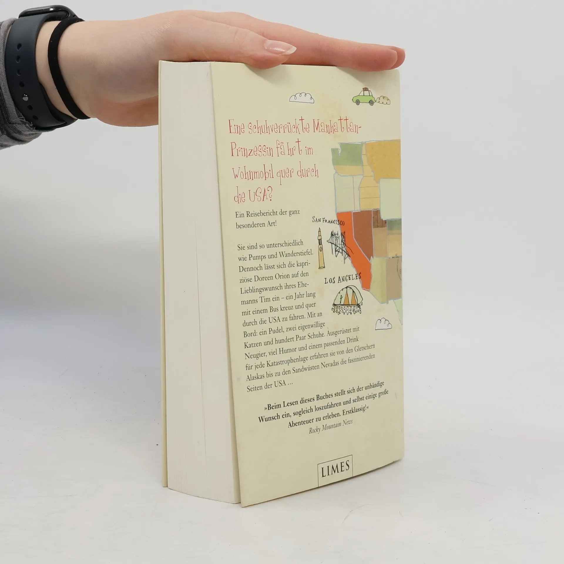 Eine Manhattan-Prinzessin im Wohnmobil! Doreen und Tim Orion führen eine wunderbare Ehe, auch wenn die beiden unterschiedlicher kaum sein könnten. Bis Tim eine Idee hat: Er will in einem umgebauten Bus durch die USA reisen. Bis heute weiß Doreen nicht, wie Tim – ein echter Naturliebhaber – sie zu diesem Abenteuer überredet hat. Wahrscheinlich mit einem Trick – wie damals bei ihrem ersten Date. Schon bald jedenfalls sitzt die kapriziöse Shopping-Prinzessin mit Schuhtick in einem zum Camper umgebauten Bus und reist mit ihrem Mann kreuz und quer durch die USA. Mit an Bord: ein Riesenpudel und zwei eigenwillige Katzen. Wie Doreen zwischen Alaska, Tornados und Nudisten-Camps Haltung bewahrt, zur stolzen 'Queen of the Road' aufsteigt und vor allem keinen Gattenmord begeht, davon erzählt dieses höchst humorvolle und warmherzige Buch. Eine Amerikareise, so unterhaltsam als stamme sie aus der Feder Bill Brysons.