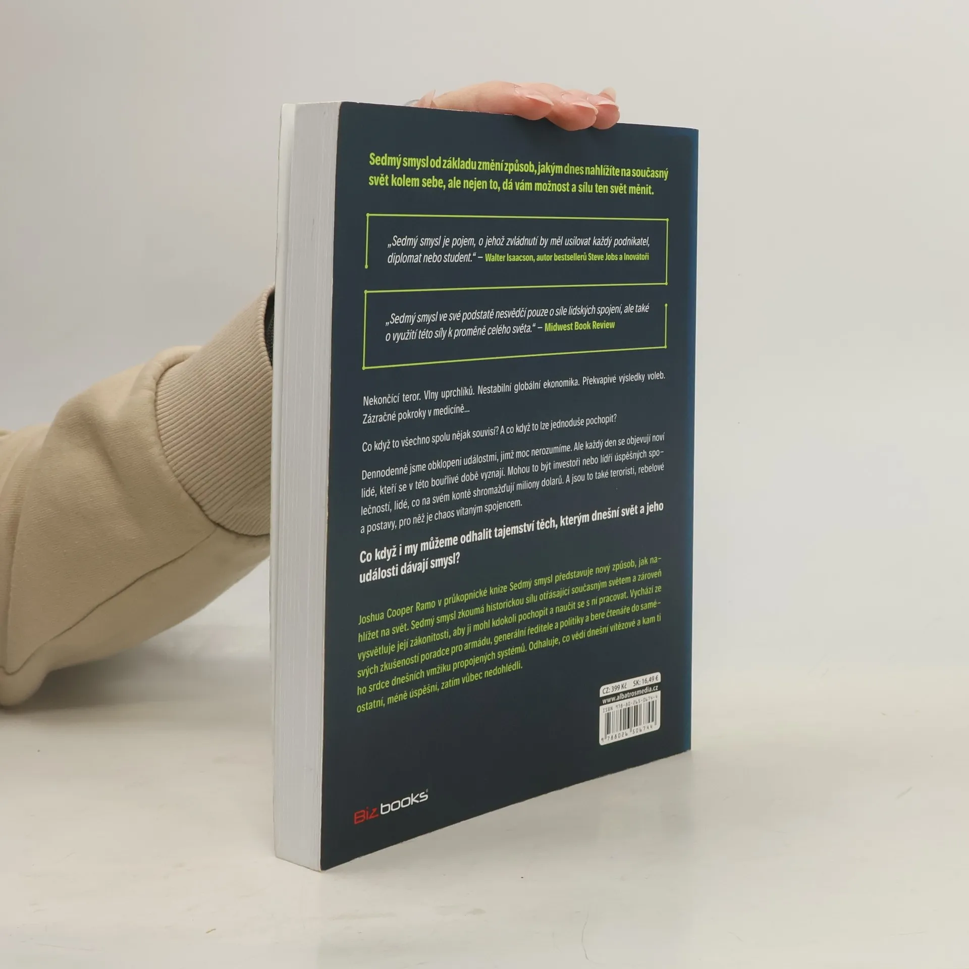 Nekončící teror, vlny uprchlíků, nestabilní globální ekonomika a překvapivé volební výsledky – co když to všechno spolu souvisí a lze to pochopit? Denně jsme svědky událostí, kterým nerozumíme, ale objevují se lidé, kteří se v této bouřlivé době vyznají. Může to být investoři, úspěšní podnikatelé, ale také teroristé a rebelové, pro které je chaos spojencem. Co když i vy můžete odhalit tajemství těch, kteří chápou dnešní svět? Autor představuje nový pohled na svět a zkoumá historickou sílu, která nyní otřásá naším životem. Vysvětluje její zákonitosti, aby je mohl každý pochopit a naučit se s nimi pracovat. Tento přístup zásadně změní váš pohled na současnost a poskytne vám nástroje k jejímu ovlivnění. Úspěšní lidé vidí skryté síly, které formují vše od technologických změn po politické situace. Tajemství spočívá v dnešních sítích, ať už jde o internet nebo obchodní a finanční vazby. Autor, vycházející ze zkušeností poradce pro armádu a politiky, vás zavede do srdce propojených systémů a odhalí, co vědí dnešní vítězové. „Sedmý smysl je dovednost, kterou by měl ovládnout každý podnikatel, diplomat nebo student.“ – Walter Isaacson.