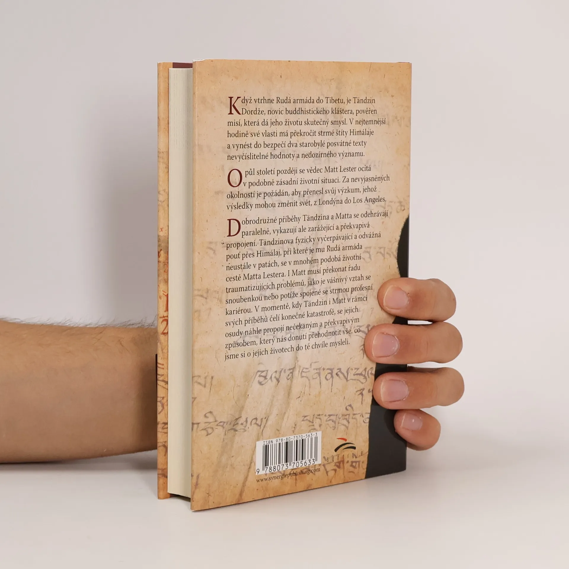 Když vtrhne Rudá armáda do Tibetu, je Tändzin Dordže, novic buddhistického kláštera, pověřen misí, která dá jeho životu skutečný smysl. V nejtemnější hodině své vlasti má překročit strmé štíty Himálají a vynést do bezpečí dva starobylé posvátné texty nevyčíslitelné hodnoty a nedozírného významu. O půl století později se vědec Matt Lester ocitá v podobně zásadní životní situaci. Za nevyjasněných okolností je požádán, aby přenesl svůj výzkum, jehož výsledky mohou změnit svět, z Londýna do Los Angeles. Dobrodružné příběhy Tändzina a Matta se odehrávají paralelně, vykazují ale zarážející a překvapivá propojení. Tändzinova fyzicky vyčerpávající a odvážná pouť přes Himálaje, při které je mu Rudá armáda neustále v patách, se v mnohém podobá životní cestě Matta Lestera. I Matt musí překonat řadu traumatizujících problémů, jako je vášnivý vztah se snoubenkou Isabellou nebo potíže spojené se strmou profesní kariérou. V momentě, kdy Tändzin i Matt v rámci svých příběhů čelí konečné katastrofě, se jejich osudy náhle propojí nečekaným a překvapivým způsobem, který nás donutí přehodnotit vše, co jsme si o jejich životech do té chvíle mysleli.
