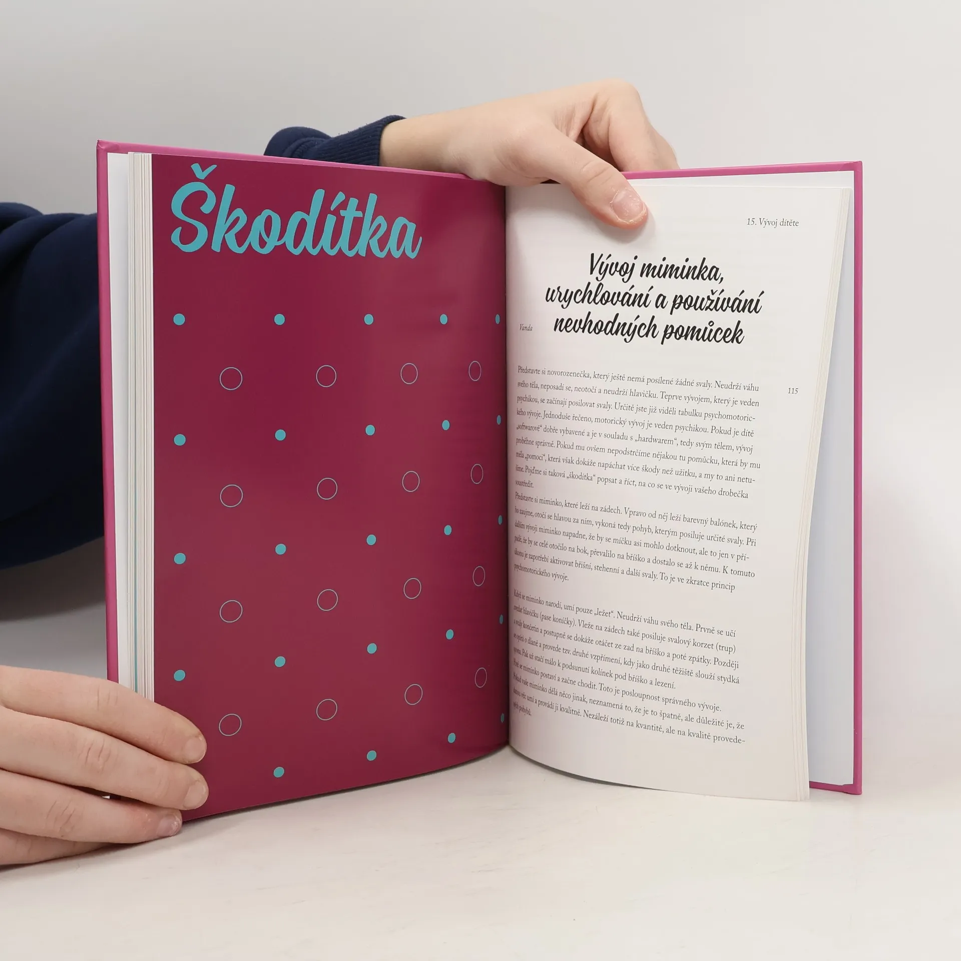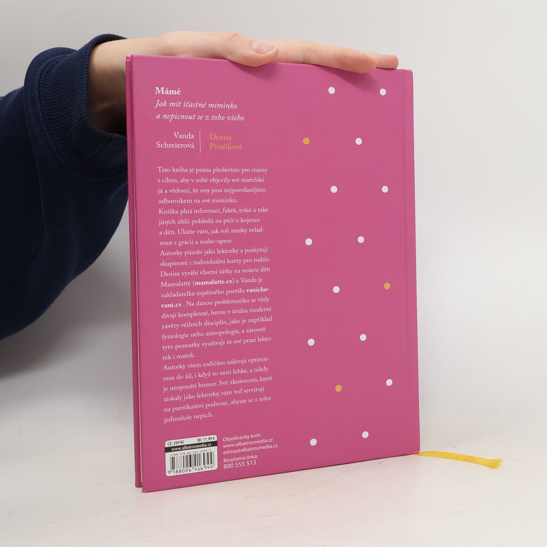 Tato kniha je psána především pro mámy s cílem, aby v sobě objevily své mateřské já a vědomí, že ony jsou nejpovolanějším odborníkem na své miminko. Knížka plná informací, faktů, triků a také jiných úhlů pohledů na péči o kojence a děti. Ukáže vám, jak roli matky zvládnout s grácií a make-upem. Autorky působí jako lektorky a poskytují skupinové i individuální kurzy pro rodiče. Denisa vyrábí vlastní šátky na nošení dětí Mamalatté (mamalatte.cz, https://www.facebook.com/mamalattecz/?fref=ts) a Vanda je zakladatelka úspěšného portálu vanickovani.cz (také https://www.facebook.com/vanickovani/?fref=ts). Na danou problematiku se vždy dívají komplexně, berou v úvahu moderní závěry vědních disciplín, jako je například fyziologie nebo antropologie, a zároveň tyto poznatky využívají ve své praxi lektorek i matek. Autorky všem rodičům nalévají optimismus do žil, i když to není lehké, a nikdy je neopouští humor. Své zkušenosti, které získaly jako lektorky, vám teď servírují na puntíkatém podnose, abyste se z toho jednoduše nepicli.