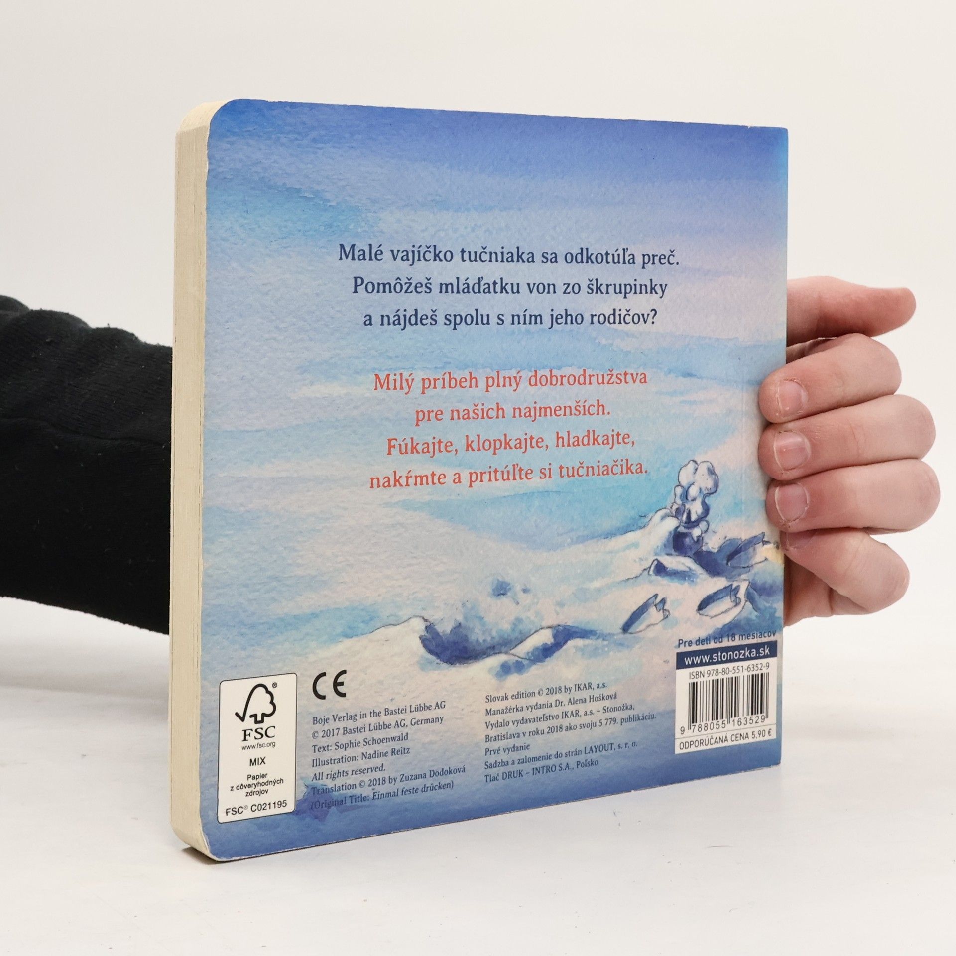 Malé vajíčko tučniaka sa odkotúľa preč. Pomôžeš mláďatku von zo škrupinky a nájdeš spolu s ním jeho rodičov? Milý príbeh plný dobrodružstva pre našich najmenších. Fúkajte, klopkajte, hladkajte, nakŕmte a pritúľte si tučniačika. Pre deti od 18 mesiacov.
