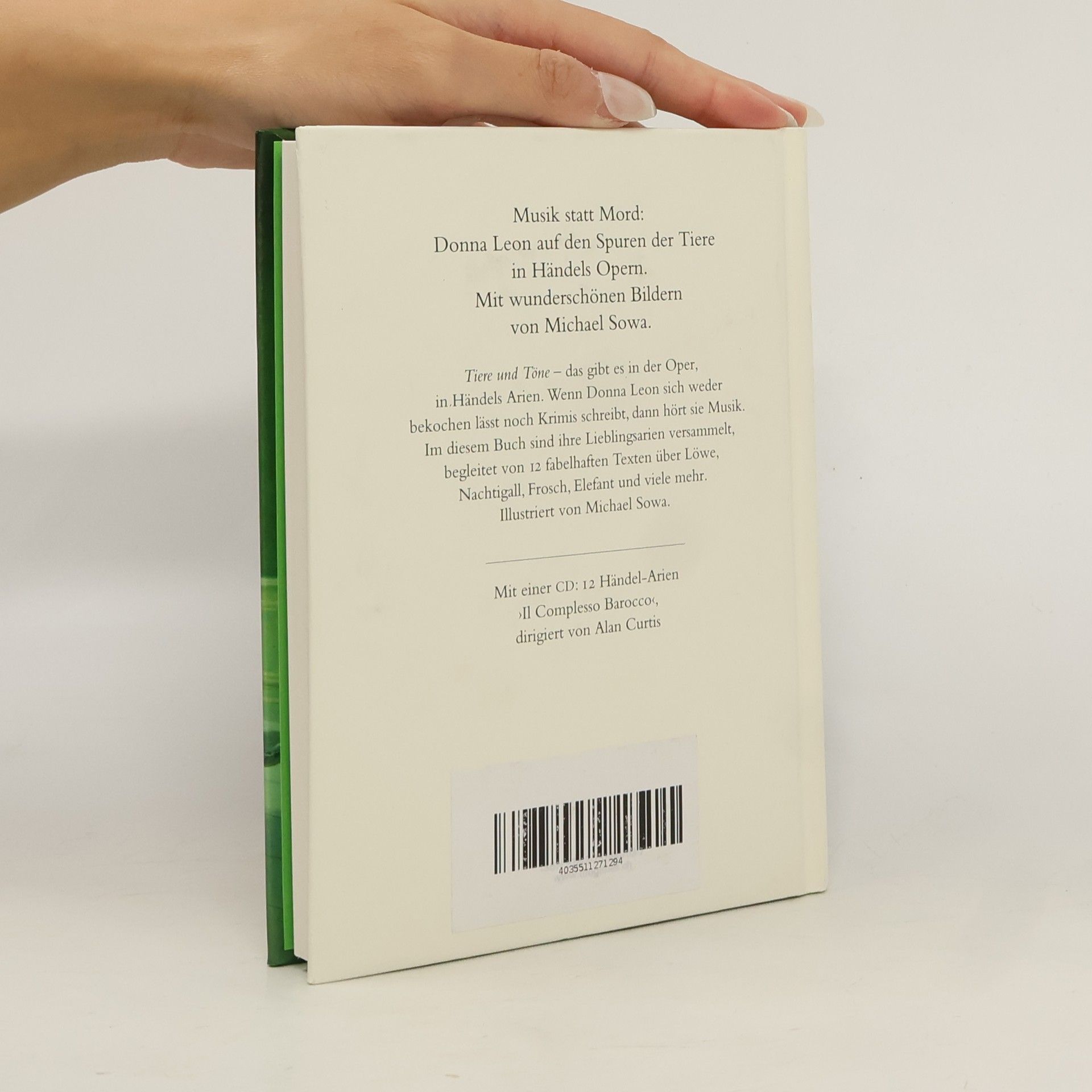 Tiere und Töne das gibt es in der Oper, in Händels Arien. Wenn Donna Leon sich weder bekochen lässt noch Krimis schreibt, dann hört sie Musik. Im vorliegenden Buch sind ihre Lieblingsarien versammelt, begleitet von 12 fabelhaften Texten über Löwe, Nachtigall, Frosch, Elefant und viele mehr. Illustriert von Michael Sowa. Mit einer CD: 12 Händel-Arien, Il Complesso Barocco , dirigiert von Alan Curtis.