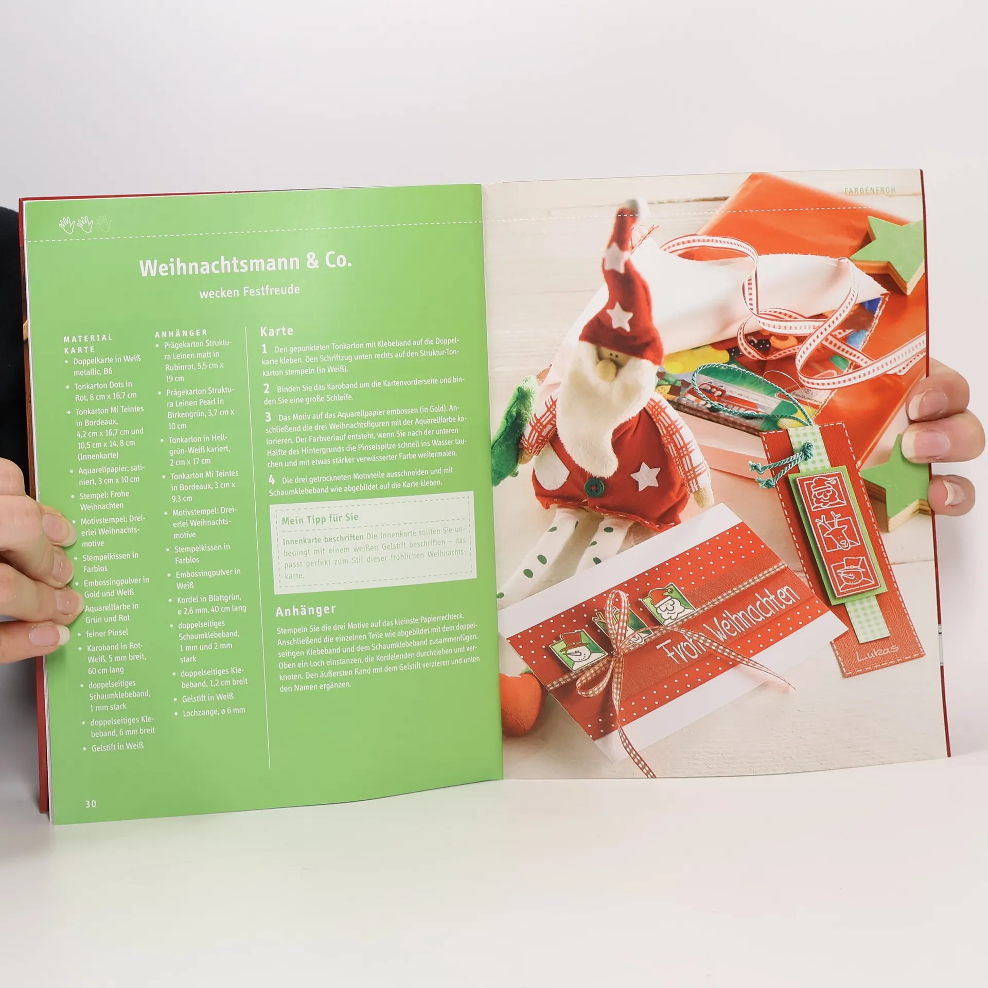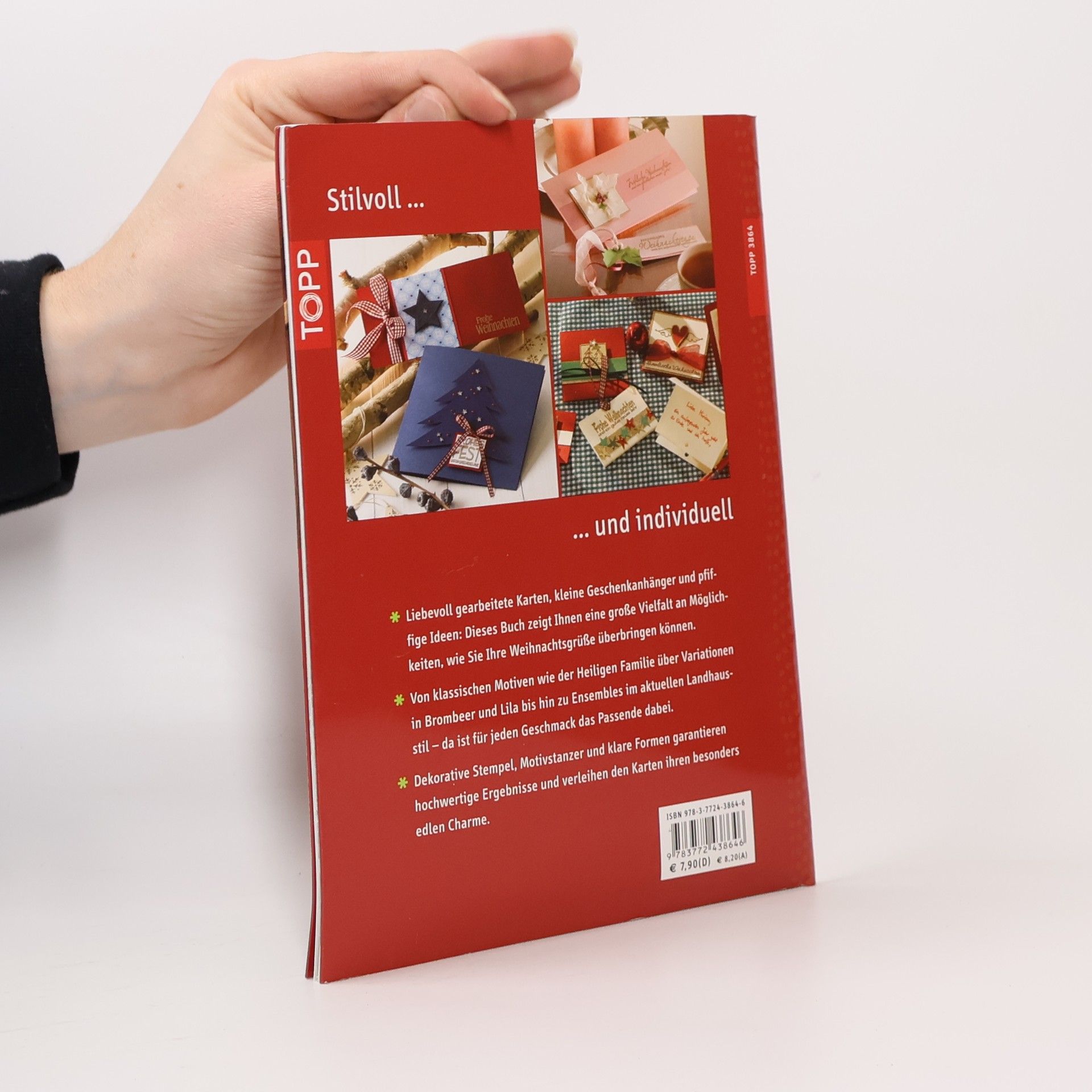 Liebevoll gearbeitete Karten, kleine Geschenkanhänger und pfiffige Ideen: Dieses Buch zeigt Ihnen eine große Vielfalt an Möglichkeiten, wie Sie Ihre Weihnachtsgrüße überbringen können. Von klassischen Motiven wie der Heiligen Familie über Variationen in Pink und Lila bis hin zu Ensembles im aktuellen Landhausstil - da ist für jeden Geschmack das Passende dabei. Dekorative Stempel, Motivstanzer und klare Formen garantieren hochwertige Ergebnisse und verleihen den Karten ihren besonders edlen Charme. 32 Seiten, 17 x 22 cm, Softcover, Umschlagklappen, perforierte Vorlagenbogen, Einsteckhüllen