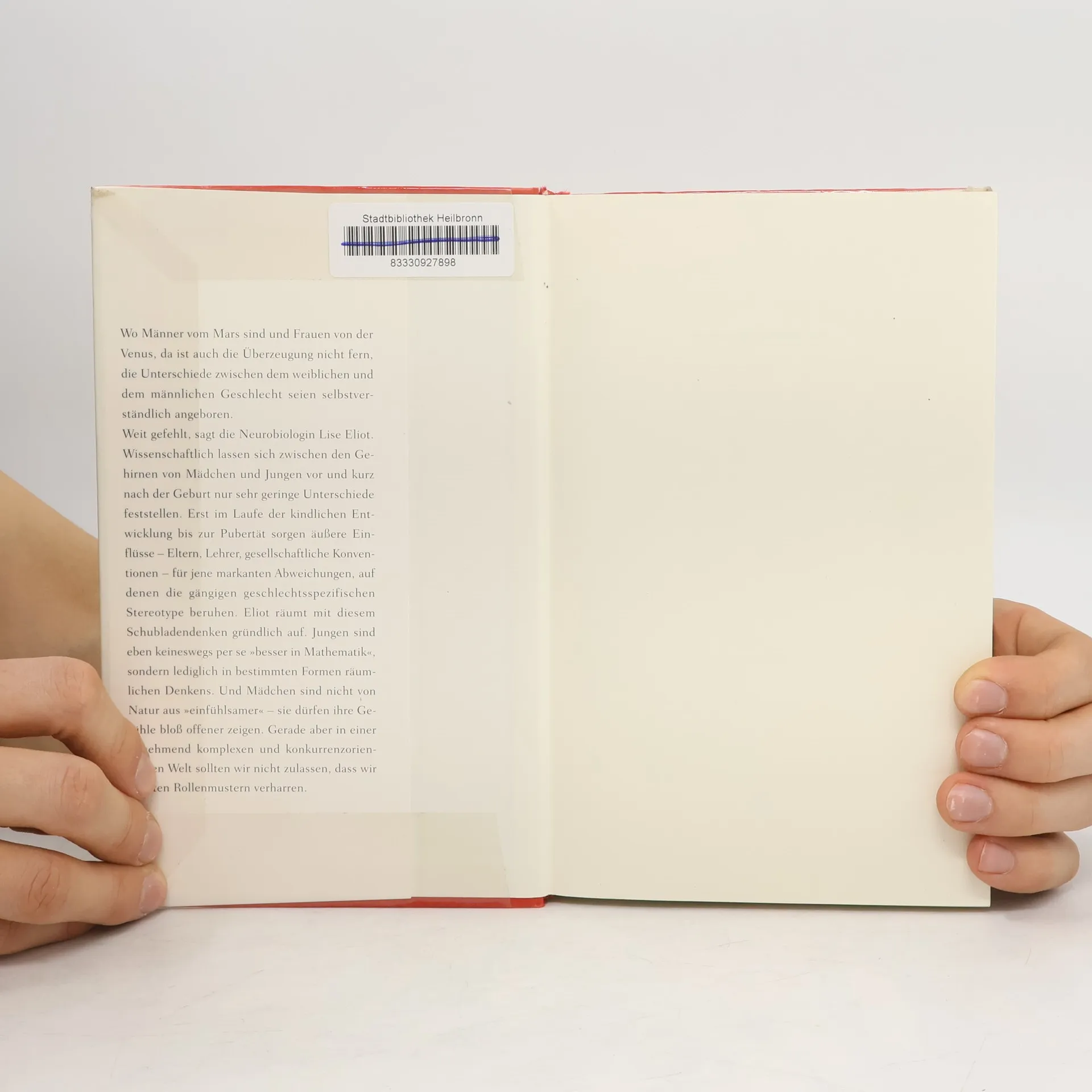 Die Überzeugung, dass Unterschiede zwischen Männern und Frauen angeboren sind, wird von Neurobiologin Lise Eliot widerlegt. Wissenschaftliche Untersuchungen zeigen, dass es vor und kurz nach der Geburt nur minimale Unterschiede zwischen den Gehirnen von Mädchen und Jungen gibt. Erst während der kindlichen Entwicklung bis zur Pubertät führen äußere Einflüsse wie Eltern, Lehrer und gesellschaftliche Konventionen zu den markanten Abweichungen, die den gängigen Geschlechterstereotypen zugrunde liegen. Eliot räumt mit dem Schubladendenken auf: Jungen sind nicht per se besser in Mathematik, sondern in bestimmten Formen räumlichen Denkens. Mädchen sind nicht von Natur aus einfühlsamer, sondern dürfen ihre Gefühle einfach mehr zeigen. In einer komplexen und wettbewerbsorientierten Welt sollten wir alte Rollenmustern nicht verhaftet bleiben, da beide Geschlechter über neue Fähigkeiten verfügen. Eliot plädiert eindringlich dafür, verquere Geschlechterkonventionen zu überwinden. Mit zahlreichen konkreten Beispielen und Ratschlägen verdeutlicht sie, dass unsere Gesellschaft und jeder Einzelne es sich zur Aufgabe machen sollten, allen Kindern – unabhängig vom Geschlecht – zu helfen, ihr volles Potenzial zu entfalten.