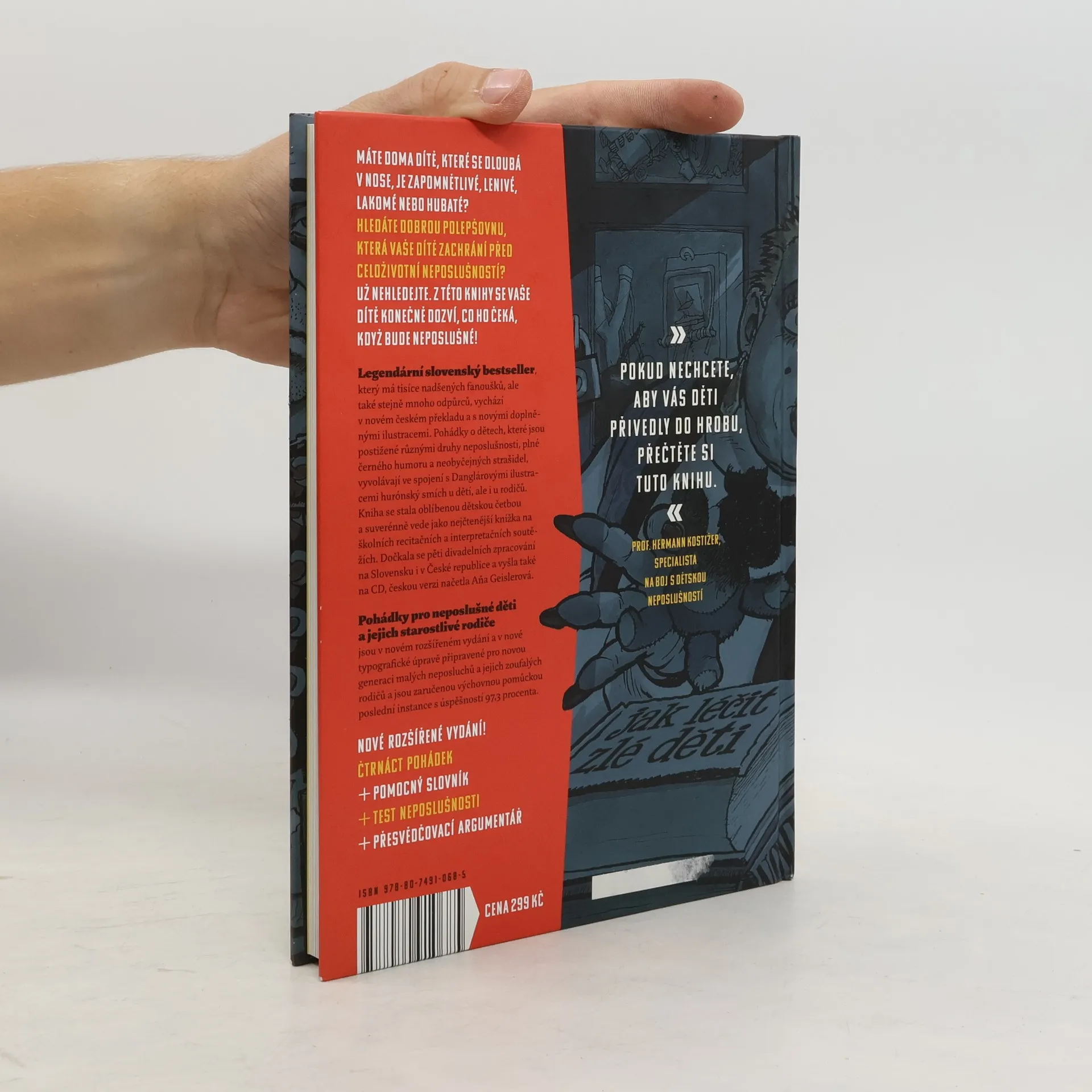 Pohádky pro neposlušné děti a jejich starostlivé rodiče jsou v novém rozšířeném vydání a v nové typografické úpravě připravené pro novou generaci malých neposlušníků a jejich zoufalých rodičů a jsou zaručenou pedagogicko-výchovnou pomůckou poslední instance s úspěšností 97,3 procent. Máte doma dítě, které se dloubá v nose, je zapomnětlivé, lenivé, lakomé nebo hubaté? Hledáte dobrou polepšovnu, která Vaše dítě zachrání před celoživotní neposlušností? Už nehledejte. Z této knihy se Vaše dítě konečně dozví, co ho čeká, když bude neposlušné! Legendární slovenský bestseller, který má tisíce nadšených fanoušků, ale také stejně mnoho odpůrců, vychází v novém českém překladu a s novými doplněnými ilustracemi. Pohádky o dětech, které jsou postižené různými druhy neposlušnosti, plné černého humoru a neobyčejných strašidel, vyvolávají ve spojení s Danglárovými ilustracemi hurónský smích u dětí, ale i u rodičů. Kniha se stala oblíbenou dětskou četbou a suverénně vede jako nejčtenější knížka na školních recitačních a interpretačních soutěžích.