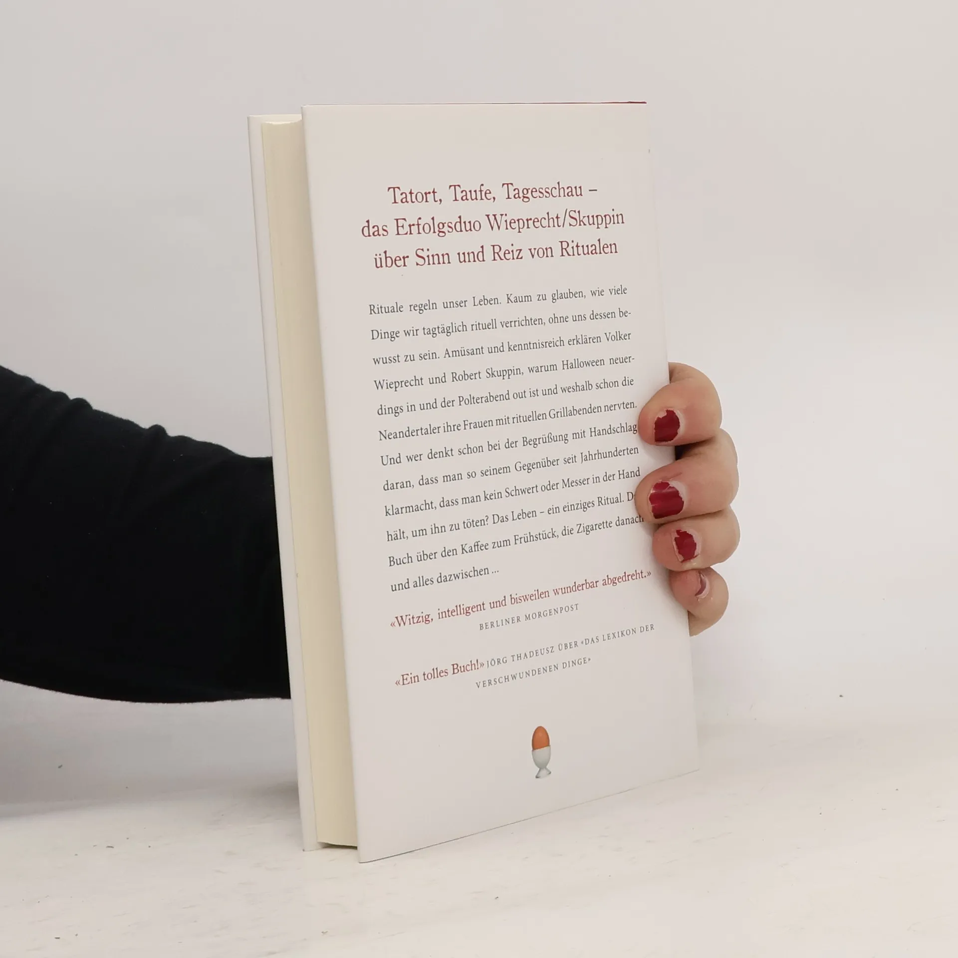 Tatort, Taufe, Tagesschau – das Erfolgsduo Wieprecht/Skuppin über Sinn und Reiz von Ritualen Rituale regeln unser Leben. Kaum zu glauben, wie viele Dinge wir tagtäglich rituell verrichten, ohne uns dessen bewusst zu sein. Amüsant und kenntnisreich erklären Volker Wieprecht und Robert Skuppin, warum Halloween neuerdings in und der Polterabend out ist und weshalb schon die Neandertaler ihre Frauen mit rituellen Grillabenden nervten. Und wer denkt schon bei der Begrüßung mit Handschlag daran, dass man so seinem Gegenüber seit Jahrhunderten klarmacht, dass man kein Schwert oder Messer in der Hand hält, um ihn zu töten? Das Leben – ein einziges Ritual. Das Buch über den Kaffee zum Frühstück, die Zigarette danach und alles dazwischen... «Witzig, intelligent und bisweilen wunderbar abgedreht.» Berliner Morgenpost «Ein tolles Buch!» Jörg Thadeusz über «Das Lexikon der verschwundenen Dinge»