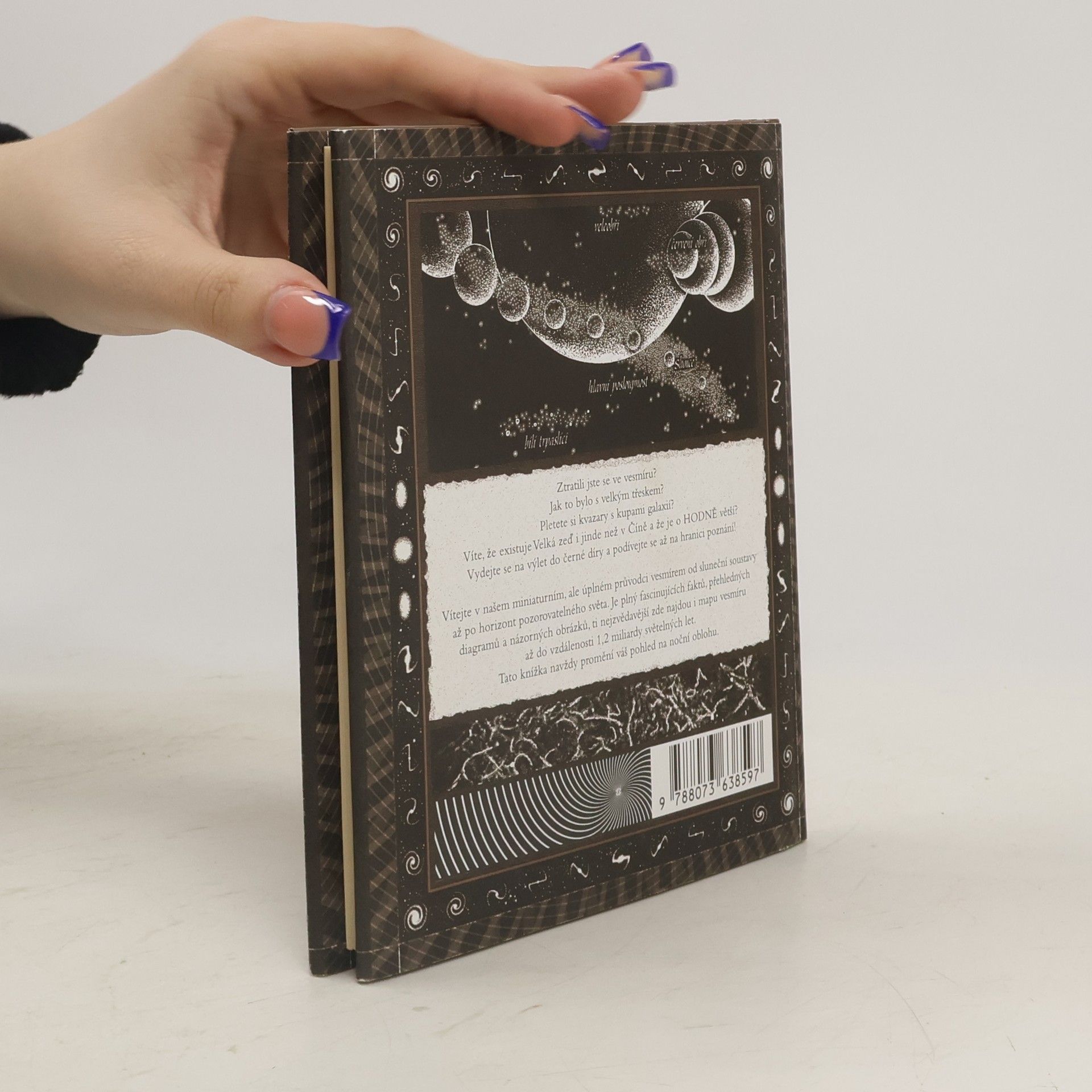 Vydejte se s námi na výlet od známých planet naší sluneční soustavy až do miliardy světelných let vzdáleného hlubokého vesmíru! Cestou vám Matt Tweed nabídne stručný přehled lidských znalostí o geografii a historii našeho vesmíru, který se hodí každému, koho uchvacuje pohled na hvězdnou oblohu. Dozvíte se to hlavní o zrození, životě a zániku hvězd, o formování planet, pulzarech, kvazarech, mlhovinách, černých dírách a temné hmotě, navíc se seznámíte s různými teoriemi o vzniku a vývoji celého vesmíru i našich nejbližších planet.