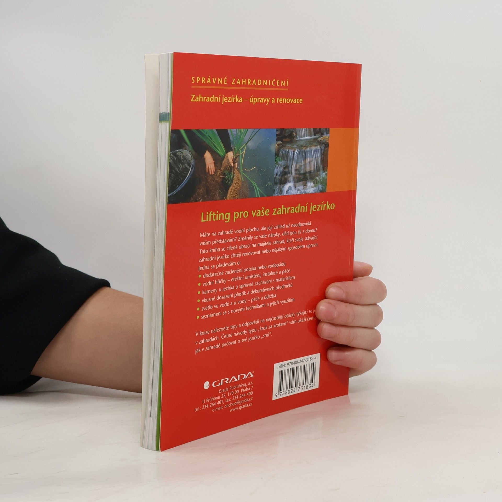 Máte na zahradě vodní plochu, ale její vzhled už neodpovídá vašim představám? Změnily se vaše nároky, děti jsou již z domu? Tato kniha se cíleně obrací na majitele zahrad, kteří svoje stávající zahradní jezírko chtějí renovovat nebo nějakým způsobem upravit. Jedná se především o: dodatečné začlenění potoka nebo vodopádu, vodní hříčky – efektní umístění, instalace a péče, kameny u jezírka a správné zacházení s materiálem, vkusné dosazení plastik a dekorativních předmětů, světlo ve vodě a u vody – péče a údržba, seznámení se s novými technikami a jejich využitím. V knize naleznete tipy a odpovědi na nejčastější otázky týkající se jezírek v zahradách. Četné návody typu „krok za krokem“ vám ukáží cestu, jak v zahradě pečovat o své jezírko „snů“.