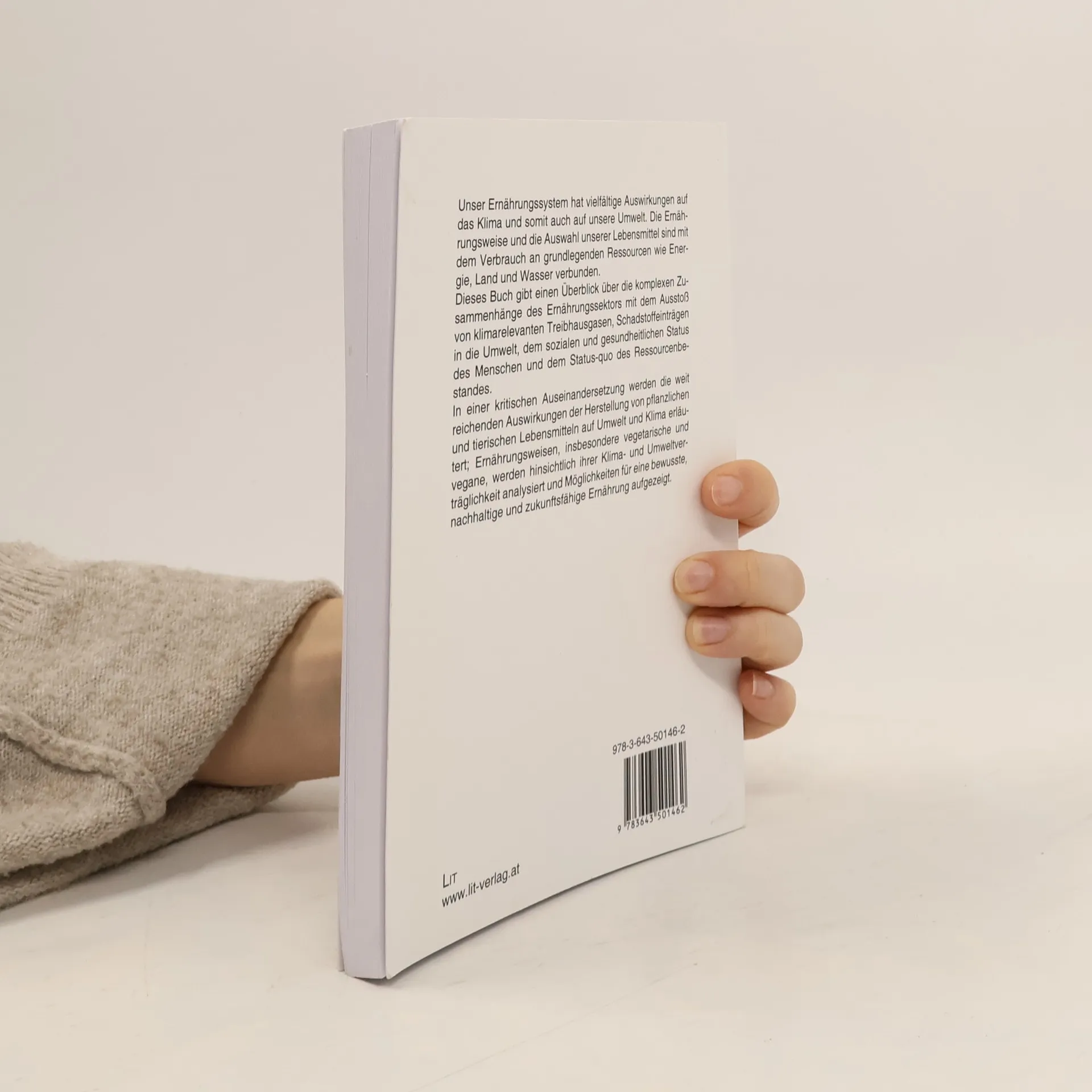 Unser Ernährungssystem hat vielfältige Auswirkungen auf das Klima und somit auch auf unsere Umwelt. Die Ernährungsweise und die Auswahl unserer Lebensmittel sind mit dem Verbrauch an grundlegenden Ressourcen wie Energie, Land und Wasser verbunden. Dieses Buch gibt einen Überblick über die komplexen Zusammenhänge des Ernährungssektors mit dem Ausstoß von klimarelevanten Treibhausgasen, Schadstoffeinträgen in die Umwelt, dem sozialen und gesundheitlichen Status des Menschen und dem Status-quo des Ressourcenbestandes. In einer kritischen Auseinandersetzung werden die weit reichenden Auswirkungen der Herstellung von pflanzlichen und tierischen Lebensmitteln auf Umwelt und Klima erläutert; Ernährungsweisen, insbesondere vegetarische und vegane, werden hinsichtlich ihrer Klima- und Umweltverträglichkeit analysiert und Möglichkeiten für eine bewusste, nachhaltige und zukunftsfähige Ernährung aufgezeigt.