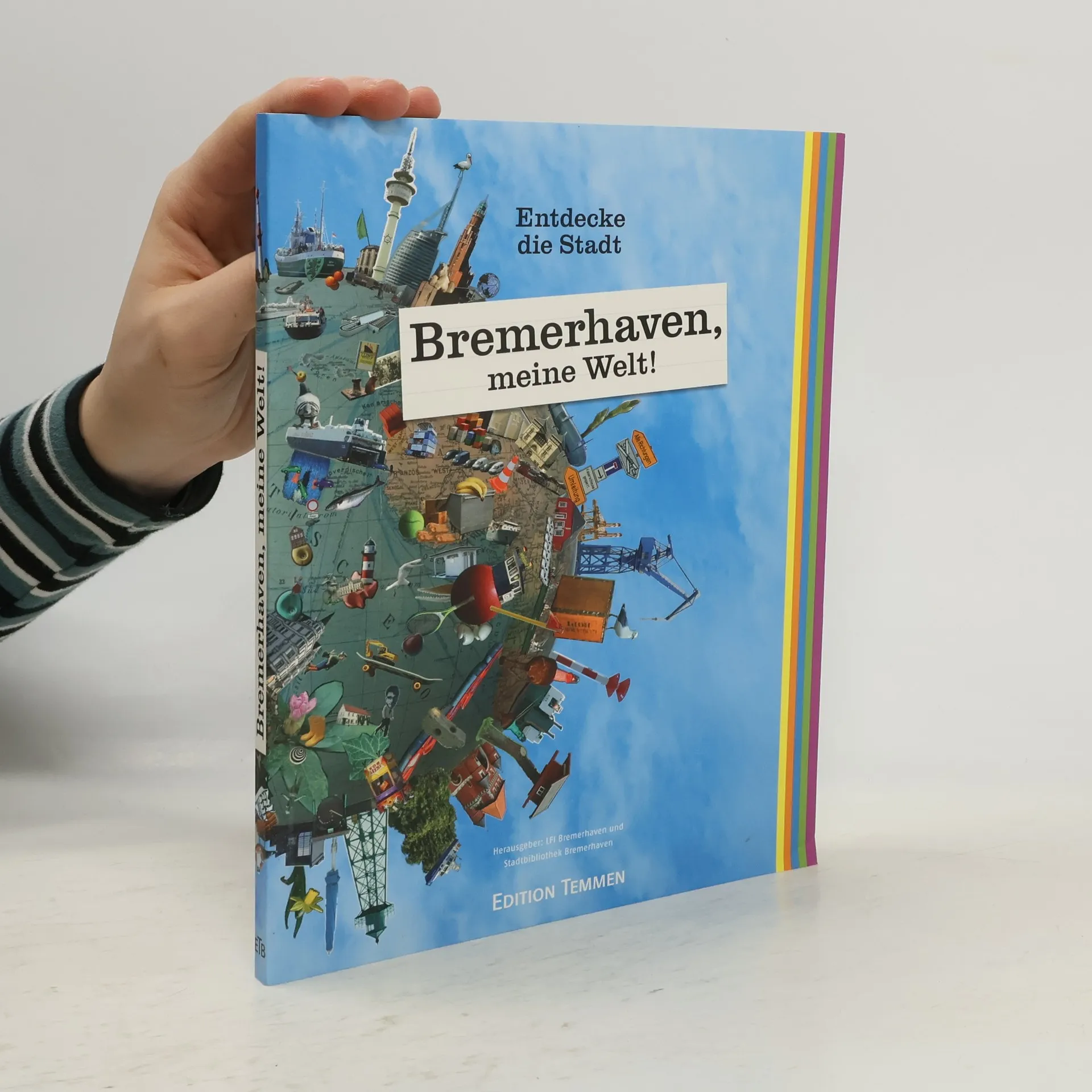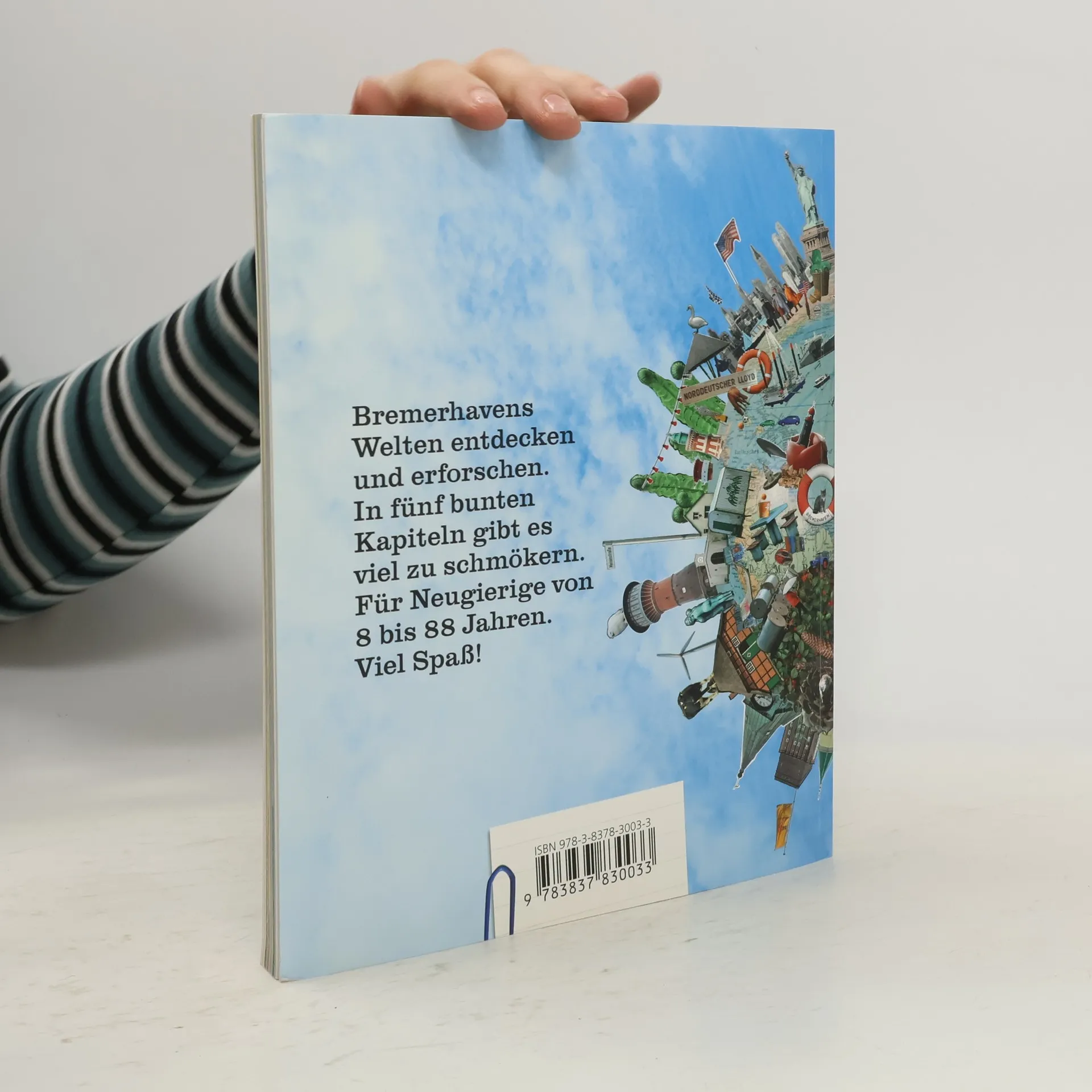 Wann wurden die Fischstäbchen erfunden? Wie viele Betten standen Reisenden im Auswandererhaus zur Verfügung? Warum sieht der Überseehafen manchmal aus wie der größte Parkplatz der Welt? Antworten finden große und kleine Leser in diesem Reiseführer, der Bremerhavenbewohner und -besucher ab 8 Jahren zu einer Entdeckungsreise durch die Stadt an der Nordsee einlädt. Mit bunten Collageabbildungen wird die Vielfalt Bremerhavens präsentiert. Der Globus auf dem Cover spiegelt das Konzept wider: In den Kapiteln werden die unterschiedlichen 'Welten' von Bremerhaven vorgestellt. Bremerhaven-Mitte führt in die Welt der Auswanderer, der Hafen bietet Einblicke in die Geschichte der Werften, und der Fischereihafen thematisiert die Arbeit und Geschichte des Fischfangs. Rätsel und kleine Rallyes ermöglichen es, einzelne Stadtteile zu erkunden und historische Hintergründe nachzulesen. Ergänzt durch zahlreiche Tipps zu Ausflügen, einen herausnehmbaren kindgerechten Stadtplan und einen Überblick über jährliche Veranstaltungen und Feste, entsteht ein abwechslungsreicher Mitmach-Führer. Dieses Projekt des LFI Bremerhaven und der Stadtbibliothek Bremerhaven vereint die Texte des Kulturwissenschaftlers Dr. Burkhard Hergesell und die frische Gestaltung der Design-Studentin Irina Gilgen von der Hochschule für Künste in Bremen.