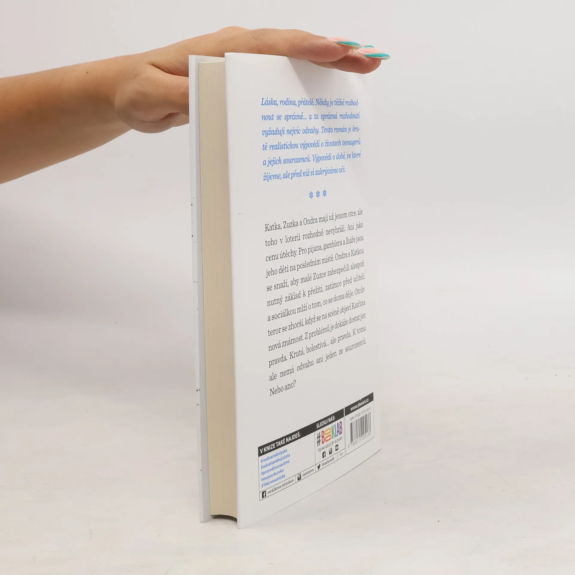 Správná rozhodnutí vyžadují nejvíc odvahy. Kačka, Zuzka a Ondra mají už jen otce, ale toho v loterii nevyhráli. Ani jako cenu útěchy. Pro pijana, gamblera a lháře jsou děti na posledním místě. Ondra s Katkou se snaží, aby malé Zuzce zabezpečili alespoň nejnutnější základ pro přežití, navíc musí před učiteli a sociálkou mlžit o tom, co se doma děje. Otcův teror se zhorší, když na scénu přichází Katčin nový objev. Zdá se, že z problémů je dokáže dostat jen pravda. Krutá, bolestivá… ale pravda. K tomu však ani jeden ze sourozenců nenachází odvahu. Nebo ano? Dívat se na svět skrz růžové brýle a zavírat oči před mnohdy nepříjemnou skutečností je velmi lehké. To ale rozhodně neplatí o novém románu Miroslavy Varáčkové. Miroslava Varáčková má doma tři chlapy a psa. Když je ráno vypraví do práce a do školy, odpluje ke klávesnici počítače a do světa fantazie. Každá její nová kniha je totiž cestou, na kterou se se svými hrdinkami vypraví. Jejich cíl není nikdy jasný, ten objevují společně a jejich zážitky formují nejen Mirku, ale i její hrdinky.