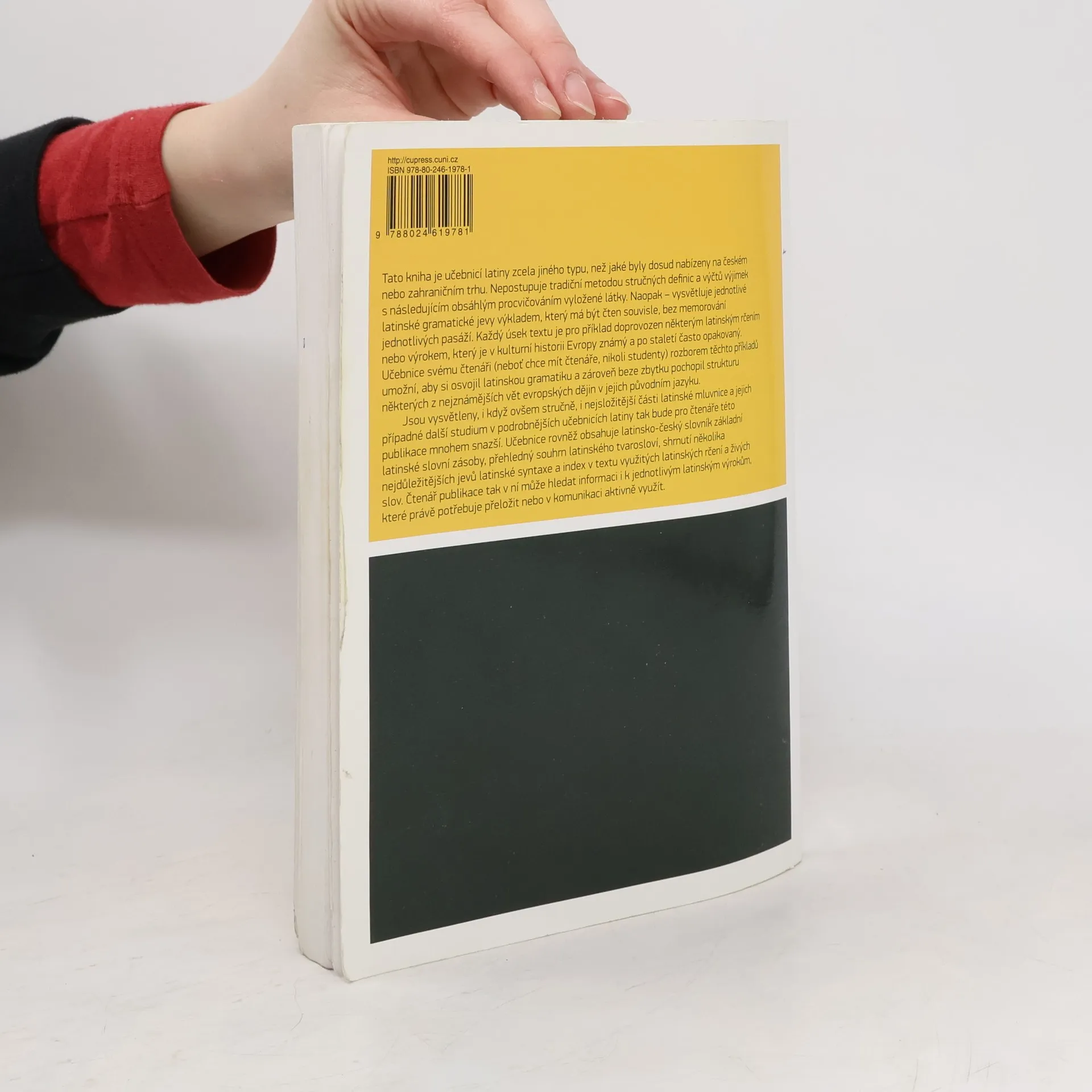Tato kniha je učebnicí latiny zcela jiného typu, než jaké byly dosud nabízeny na českém nebo zahraničním trhu. Nepostupuje tradiční metodou stručných definic a výčtů výjimek s následujícím obsáhlým procvičováním vyložené látky. Naopak - vysvětluje jednotlivé latinské gramatické jevy výkladem, který má být čten souvisle, bez memorování jednotlivých pasáží. Každý úsek textu je pro příklad doprovozen některým latinským rčením nebo výrokem, který je v kulturní historii Evropy známý a po staletí často opakovaný. Učebnice svému čtenáři (neboť chce mít čtenáře, nikoli studenty) rozborem těchto příkladů umožní, aby si osvojil latinskou gramatiku a zároveň beze zbytku pochopil strukturu některých z nejznámějších vět evropských dějin v jejich původním jazyku. Jsou vysvětleny, i když ovšem stručně, i nejsložitější části latinské mluvnice a jejich případné další studium v podrobnějších učebnicích latiny tak bude pro čtenáře této publikace mnohem snazší. Učebnice rovněž obsahuje latinsko-český slovník základní latinské slovní zásoby, přehledný souhrn latinského tvarosloví, shrnutí několika nejdůležitějších jevů latinské syntaxe a index v textu využitých latinských rčení a živých slov. Čtenář publikace tak v ní může hledat informaci i k jednotlivým latinským výrokům, které právě potřebuje přeložit nebo v komunikaci aktivně využít.