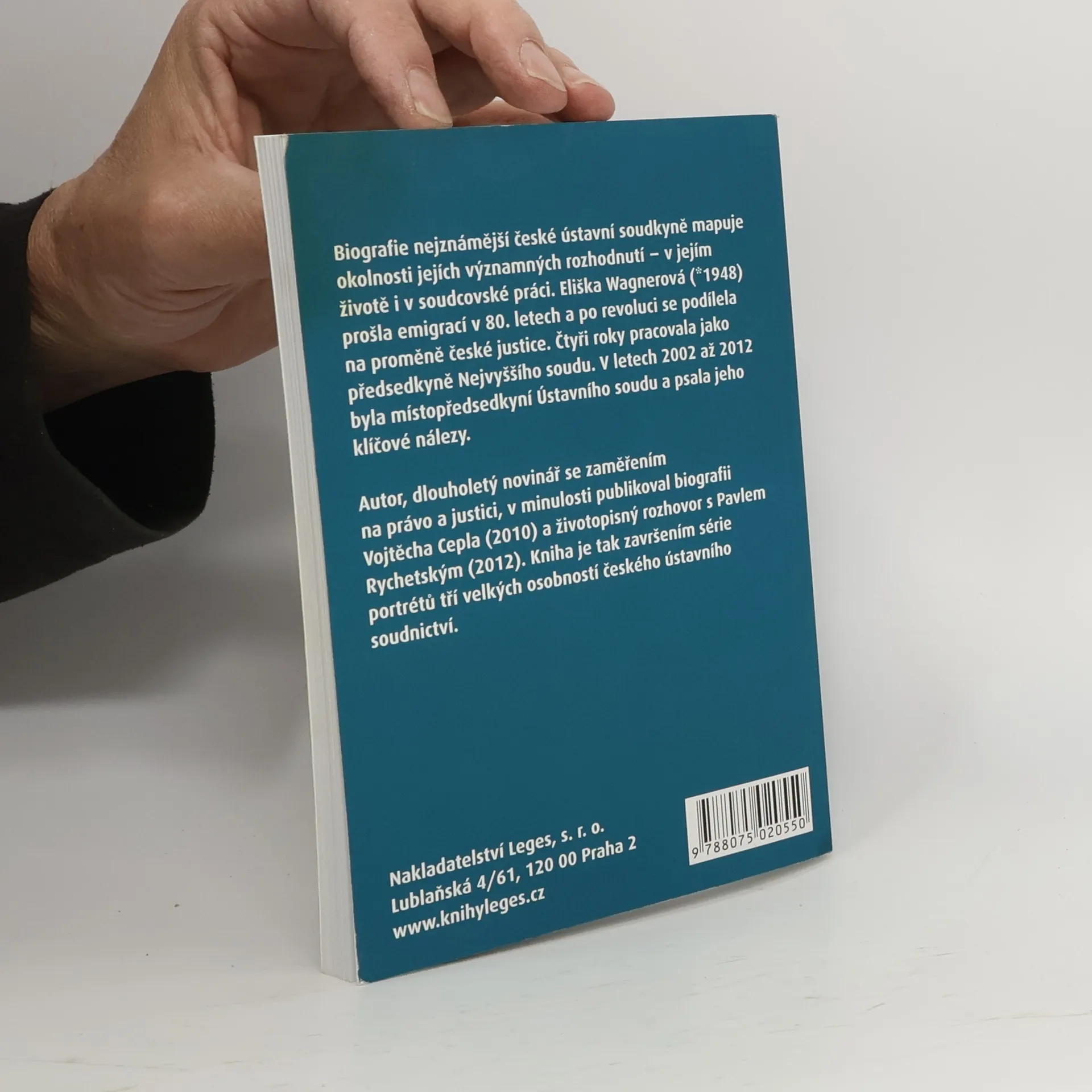 Biografie nejznámější české ústavní soudkyně mapuje okolnosti jejích významných rozhodnutí – v soukromém životě i v soudcovské práci. Eliška Wagnerová (* 1948) prošla emigrací v 80. letech a po revoluci se podílela na proměně české justice. Čtyři roky pracoval jako předsedkyně Nejvyššího soudu. V letech 2002 až 2012 byla místopředsedkyní Ústavního soudu a psala jeho klíčové nálezy. Autor, dlouholetý novinář se zaměřením na právo a justici, v minulosti publikoval biografii Vojtěcha Cepla (Leges, 2010) a životopisný rozhovor s Pavlem Rychetským (Vyšehrad, 2012). Kniha je tak završením série portrétů tří velkých osobností českého ústavního soudnictví. Doplňuje ji barevná obrazová příloha.