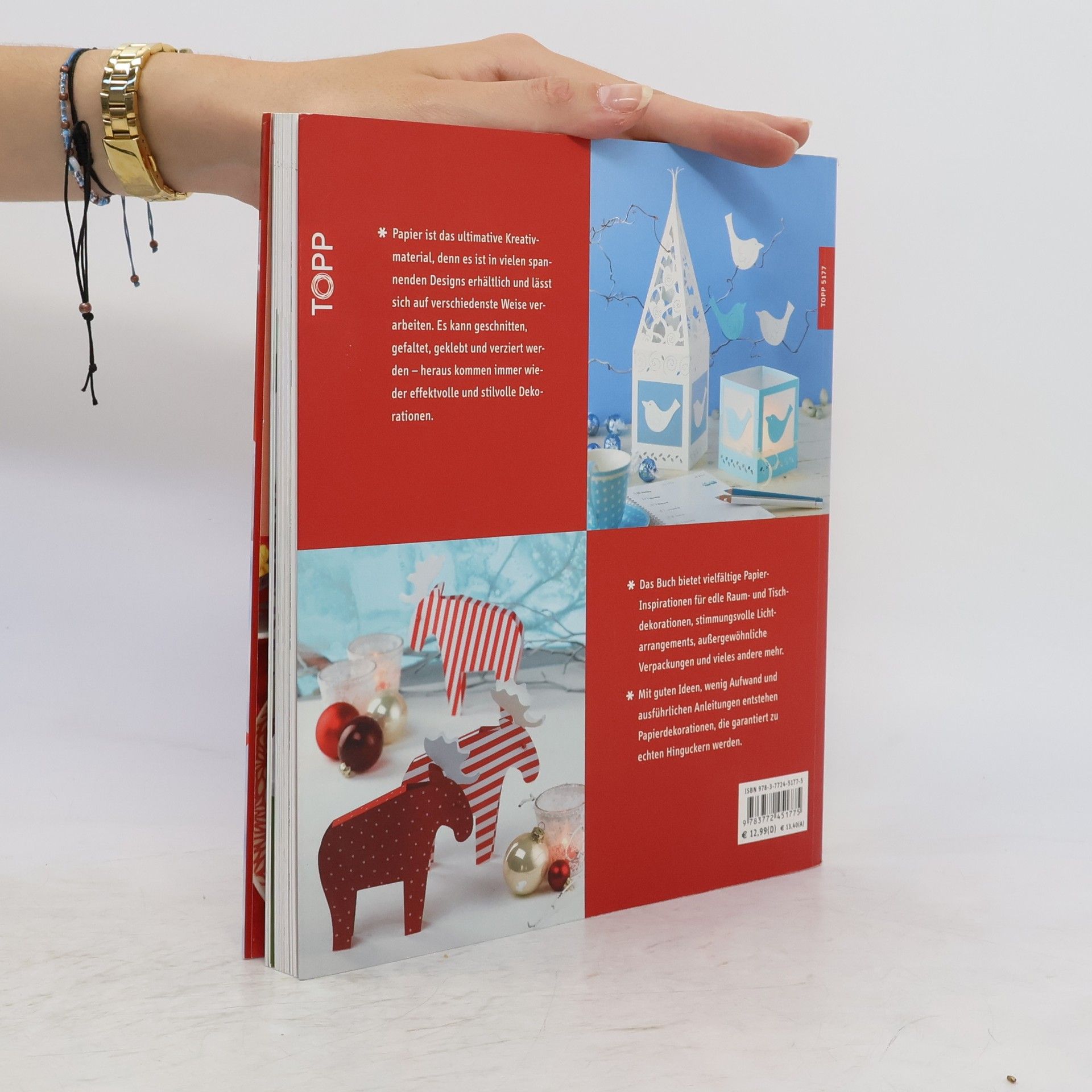 Papier ist das ultimative Kreativmaterial, denn es ist in vielen spannenden Designs erhältlich und lässt sich auf verschiedenste Weise verarbeiten. Es kann geschnitten, gefaltet, geklebt und verziert werden - heraus kommen immer wieder effektvolle und stilvolle Dekorationen. Das Buch bietet vielfältige Papier-Inspirationen für edle Raum- und Tischdekorationen, stimmungsvolle Lichtarrangements, außergewöhnliche Verpackungen und vieles andere mehr. Mit guten Ideen, wenig Aufwand und ausführlichen Anleitungen entstehen Papierdekorationen, die garantiert zu echten Hinguckern werden. 132 Seiten, 21,3 x 24 cm, Broschur mit Rücken