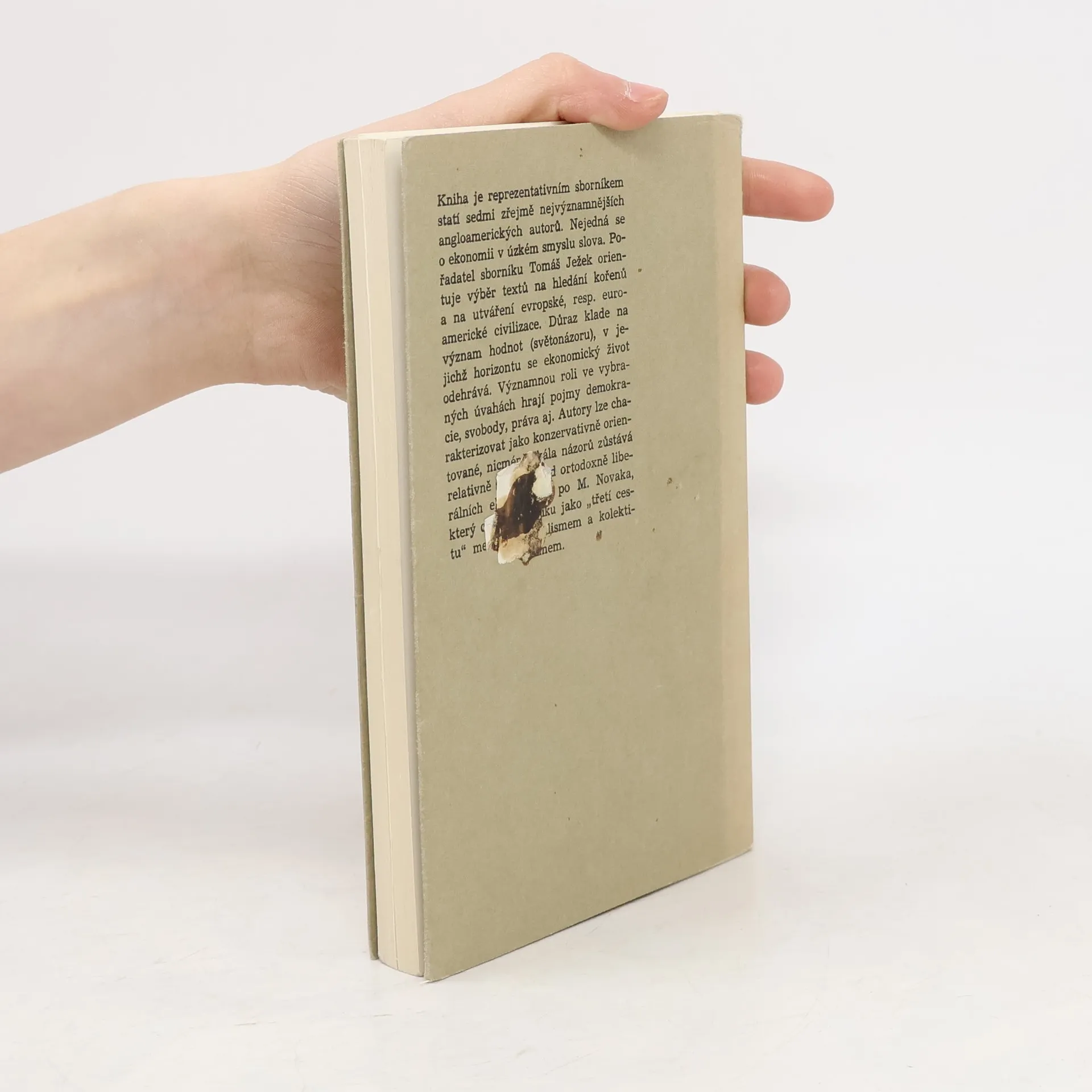 Kniha je reprezentativním sborníkem statí sedmi zřejmě nejvýznamnějších angloamerických autorů. Nejedná se o ekonomii v úzkém smyslu slova. Pořadatel sborníku Tomáš Ježek orientuje výběr textů na hledání kořenů a na utváření evropské, resp. euroamerické civilizace. Důraz klade na význam hodnot (světonázoru), v jejichž horizontu se ekonomický život odehrává. Významnou roli ve vybraných úvahách hrají pojmy demokracie, svobody, práva aj. Autory lze charakterizovat jako konzervativně orientované, nicméně škála názorů zůstává relativně široká - od ortodoxně liberálních ekonomů až po M. Novaka, který chápe Ameriku jako "třetí cestu" mezi individualismem a kolektivismem.... celý text