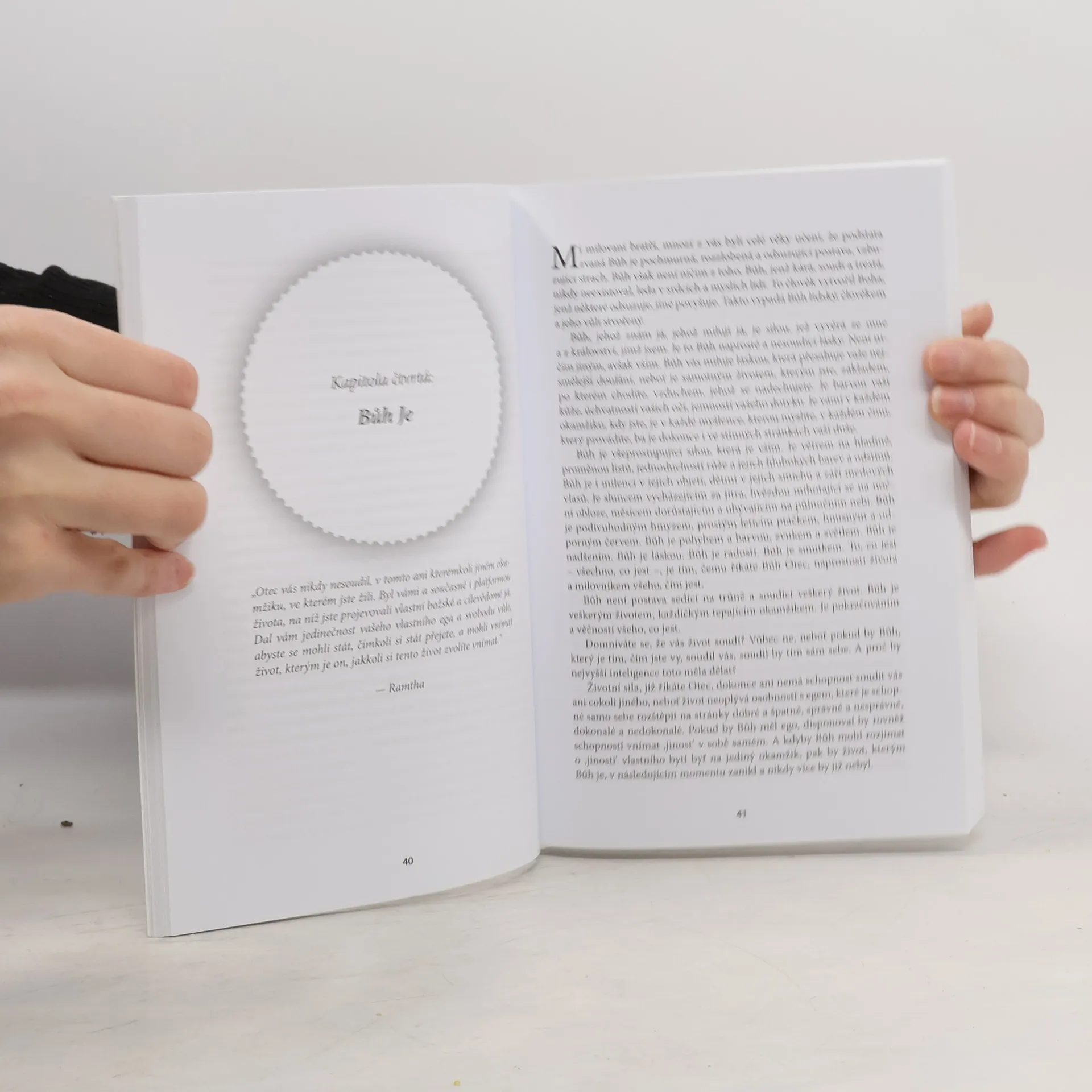 Ramtha je jednou z nejvýznamnějších současných Duchovních osobností. Přináší učení o naprosté svobodě a božskosti lidstva.Lidská bída spočívá ve ztrátě paměti, zapomnění a neznalosti vlastního původu a smyslu. Lidské bytosti se odcizily vlastnímu pravému „já“, tedy Bohu, jenž žije uvnitř nás a je námi. Zapomněli jsme na vlastní tvořivou podstatu a namísto toho hledáme pomoc a smysl a modlíme se za vykoupení k božskému zdroji, jejž si představujeme mimo sebe samé. Tím lidstvo popírá vlastní božskost a blokuje si jakoukoli šanci na vysvobození ze současné situace. „Otec vás nikdy nesoudil, v tomto ani kterémkoli jiném okamžiku, ve kterém jste žili. Byl vámi a současně i platformou života, na níž jste projevovali vlastní božské a cílevědomé já. Dal vám jedinečnost vašeho vlastního ega a svobodu vůle, abyste se mohli stát, čímkoli si stát přejete, a mohli vnímat život, kterým je on, jakkoli si tento život zvolíte vnímat.“ „Nikdy jste si nevšimli, jak překrásní jste, neboť jste na sebe nikdy skutečně nepohlédli. Nikdy jste se nepodívali na to, kým jste a čím jste. Chcete spatřit, jak vypadá Bůh? Jděte a pohlédněte do zrcadla. Díváte se mu přímo do obličeje…“ — Ramtha