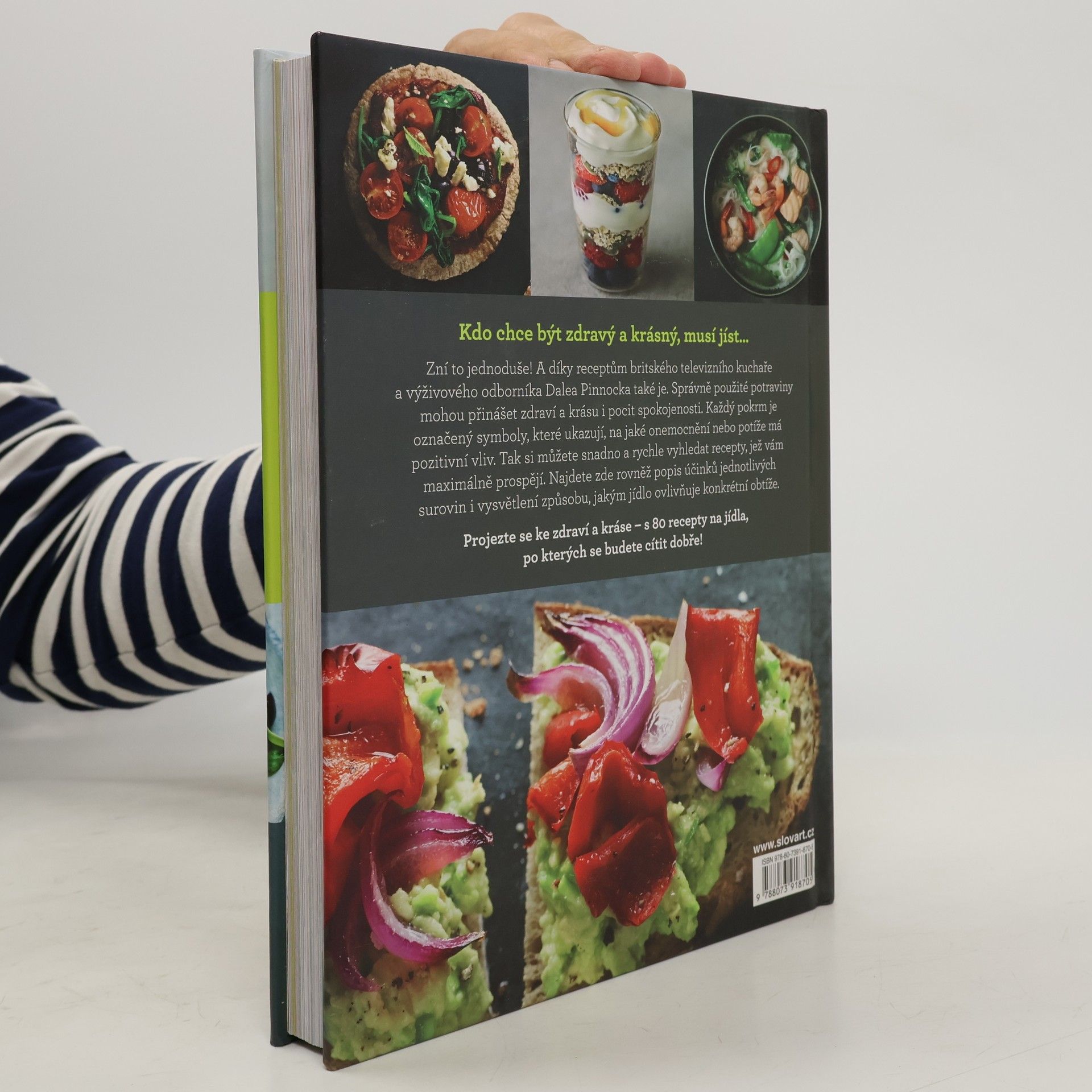 Kdo chce být zdravý a krásný, musí jíst… Zní to jednoduše! A díky receptům britského televizního kuchaře, výživového odborníka i milovníka dobrého jídla Dalea Pinnocka také je. Správně použité potraviny mohou přinášet zdraví a krásu, dostatek energie a pocit spokojenosti. Recepty na lehké kousky, polévky, rychlá jídla, náročnější víkendové vaření, přílohy, pamlsky či nápoje s přehledně napsaným postupem a lákavými fotografiemi jsou označené symboly, které ukazují, na jaké onemocnění nebo potíže mají tato jídla pozitivní vliv. Tak si můžete rychle vyhledat předpisy na pokrmy, jež vám maximálně prospějí. Najdete zde rovněž popis účinků jednotlivých surovin i vysvětlení způsobu, jakým ovlivňují konkrétní obtíže. Projezte se ke zdraví a kráse – s 80 recepty na jídla, po kterých se budete cítit dobře!