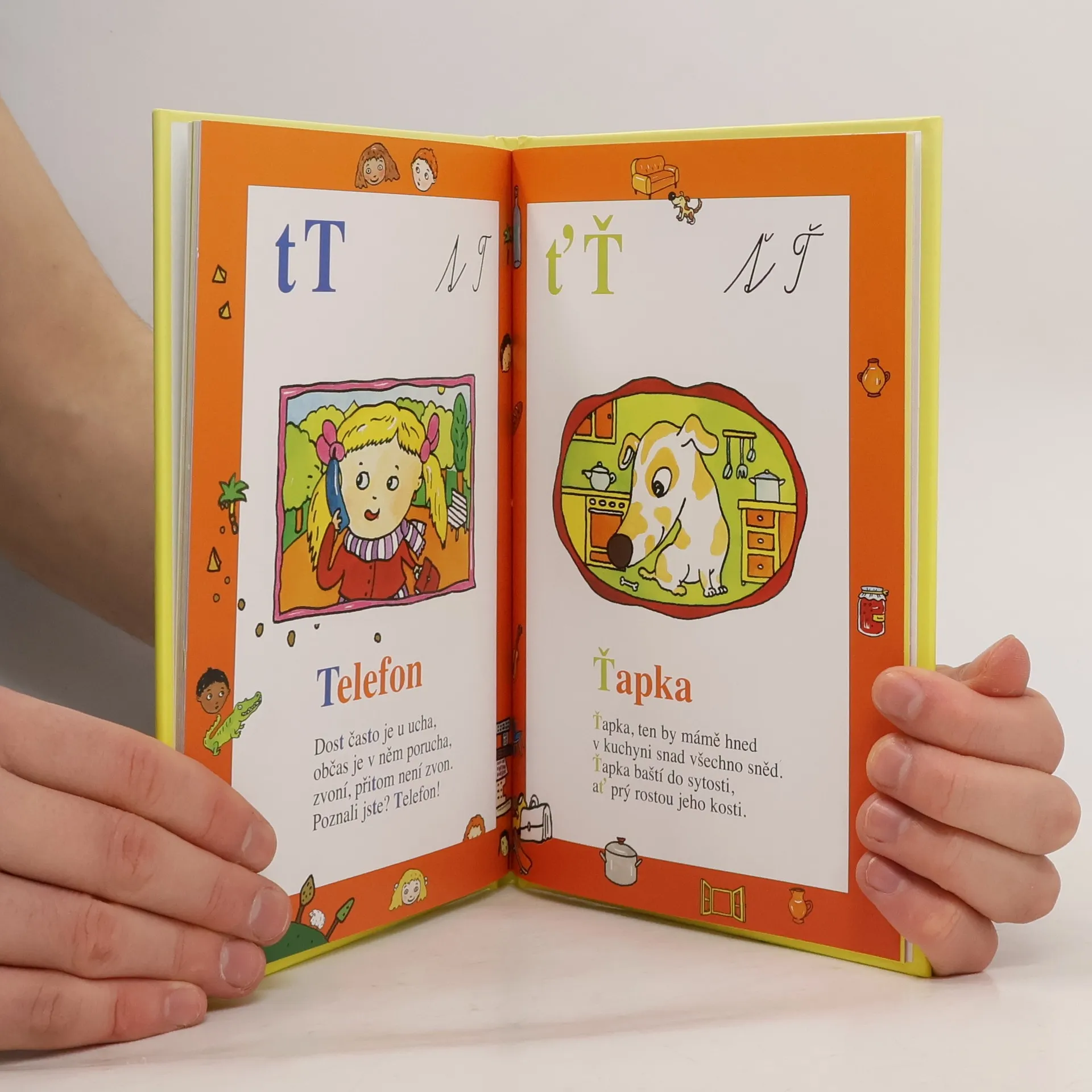 Každému písmenku je věnována jedna stránka a obrázek, který znázorňuje téma říkanky. V textu je dané písmenko zvýrazněno. Říkanky jsou jednoduché, malebné a nejsou složité na výslovnost.Krátké říkanky o jedné sloce seznámí nejmenší děti s písmenky české abecedy.
