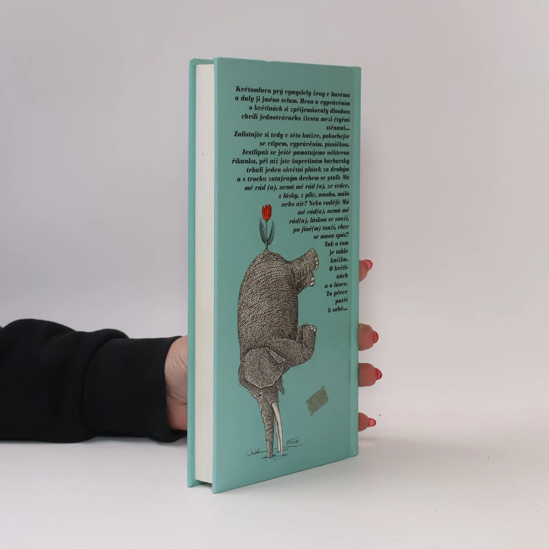 Květomluvu prý vymyslely ženy v harému a daly ji jméno selam. Hrou a vyprávěním o květinách si zpříjemňovaly dlouhou chvíli jednotvárného života mezi čtyřmi stěnami... Zalistujte si tedy v této knížce, pokochejte se vtipem, vyprávěním, písničkou. Jestlipak si ještě pamatujeme některou říkanku, pří níž jste kopretinu barbarsky trhali jeden okvětní plátek za druhým a s trochu zatajeným dechem se ptali: "Má mě rád (a), nemá mě rád (a), ze srdce, z lásky, z plic, mnoho, málo nebo nic?" Nebo raději: "Má mě rád (a), nemá mě rád (a), láskou se souží, po jiné (m) touží, chce se mnou spát?" Tak o tom je tehle knížka. O květinách a o lásce. To přece patří k sobě...