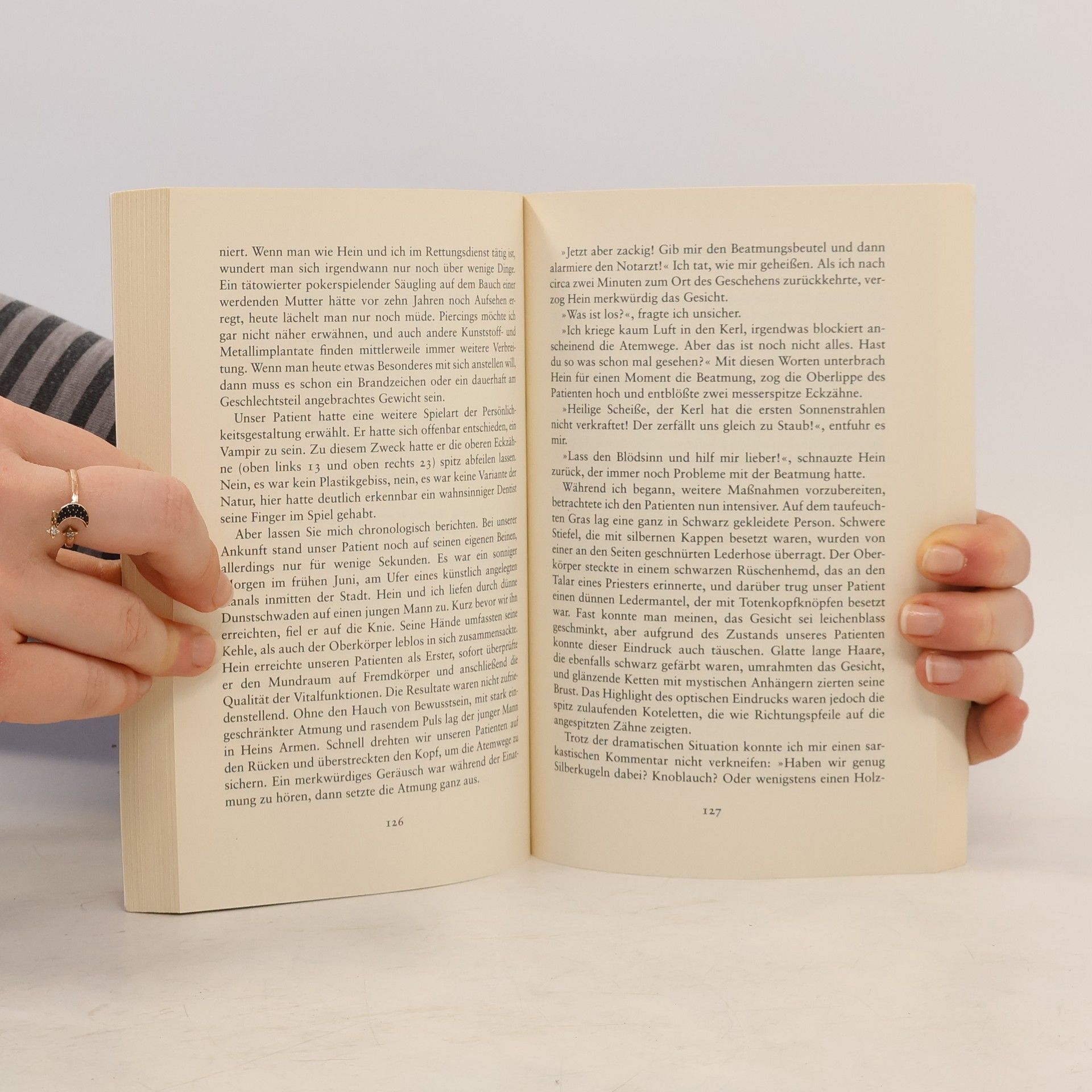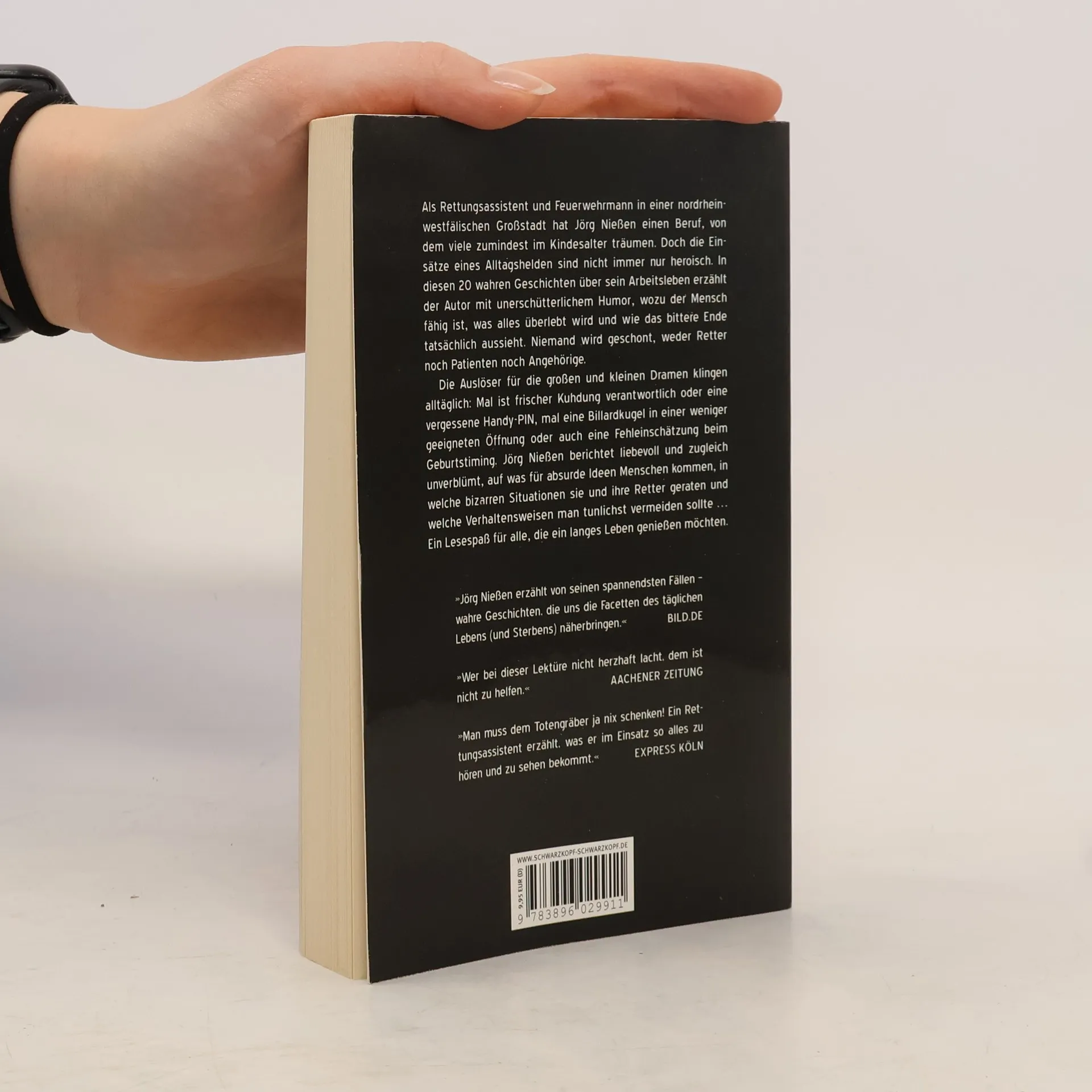 Zusammen mit seinen Kollegen erfährt der Autor in 20 wahren Geschichten am eigenen Leib, wozu der Mensch fähig ist, was alles überlebt, woran letztendlich gestorben wird und wie das bittere Ende tatsächlich ausschaut. Niemand wird geschont, weder Retter noch Patienten noch Angehörige. Jörg Nießen räumt auf mit wirklichkeitsverzerrenden TV-Serien à la Medicopter 117, die manch einen Mitmenschen dazu verleiten, schnell mal die Notrufnummer 112 zu wählen, wenn irgendwo der Schuh drückt. Im Alltag des Notfallretters konkurrieren bizarre Lappalien und haarsträubende Notfälle miteinander, weswegen der Retter sich vor allem die Fähigkeit bewahren muss, dem Schicksal auch mal ins Gesicht lachen zu können. Die Auslöser für die kleinen und großen Dramen klingen alltäglich: Mal ist frischer Kuhdung verantwortlich, mal eine PIN, Künstlerallüren oder auch Billardkugeln in mehr oder weniger geeigneten Körperöffnungen. Das Leben ist überraschend kreativ und schlägt uns immer wieder gern ein Schnippchen.