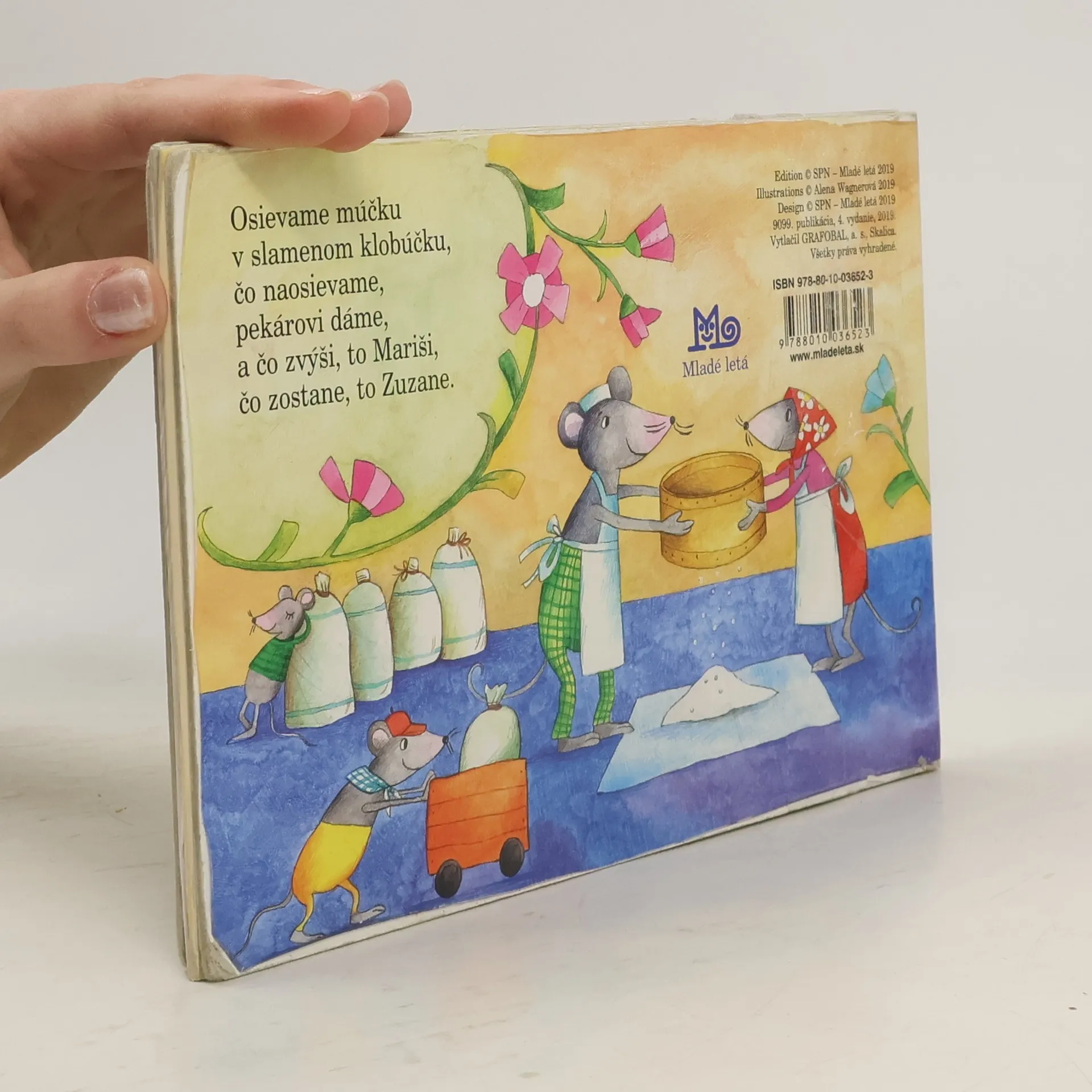 Ďalšie klasické leporelo zo série Žabiatko, tentoraz s ľudovými riekankami pre najmenších – Varila myšička kašičku, Naša mačka strakatá, Ide pavúk po stene, Osievame múčku... Riekanky sú ilustrované veselými obrázkami Aleny Wagnerovej. Skladačkové leporelo poslúži deťom aj ako hračka. 2. vydanie