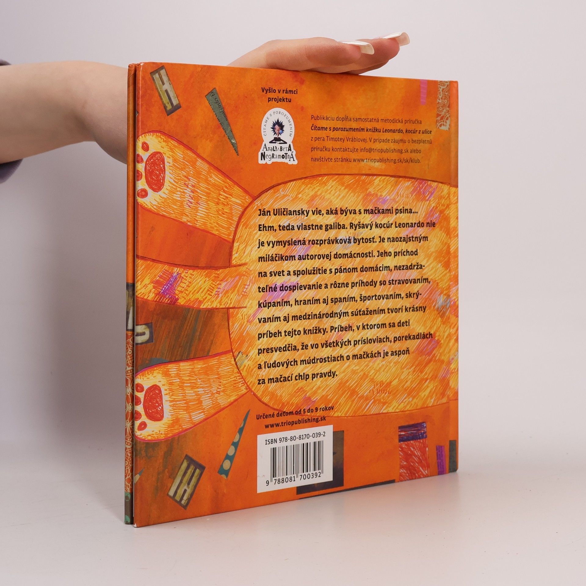 Určené deťom od 5 do 9 rokovNajkrajšia+najlepšia kniha zimy 2013 v súťaži organizovanej BibianouVyšlo v edícii Analfabeta Negramotná/Čítame s porozumenímRyšavý kocúr Leonardo nie je len vymyslená rozprávková bytosť. Je naozajstným miláčikom autorovej domácnosti. A vďaka tejto knižke sa môže ľahko stať aj členom vašej rodiny. Ján Uličiansky dobre vie, aká býva s mačkami psina. Alebo skôr oštara? Tak či tak, s kocúrikom Leom sa veru nikdy nenudil. Leonardov príchod na svet, nezadržateľné dospievanie a spolužitie s pánom domácim, rôzne príhody s papaním, kúpaním, hraním aj spaním, športovaním, skrývaním aj medzinárodným súťažením tvorí krásny príbeh pre deti. Príbeh, v ktorom sa presvedčíte, že na všetkých prísloviach, porekadlách a ľudových múdrostiach o mačkách a s mačkami je vždy aspoň za mačací chlp pravdy.