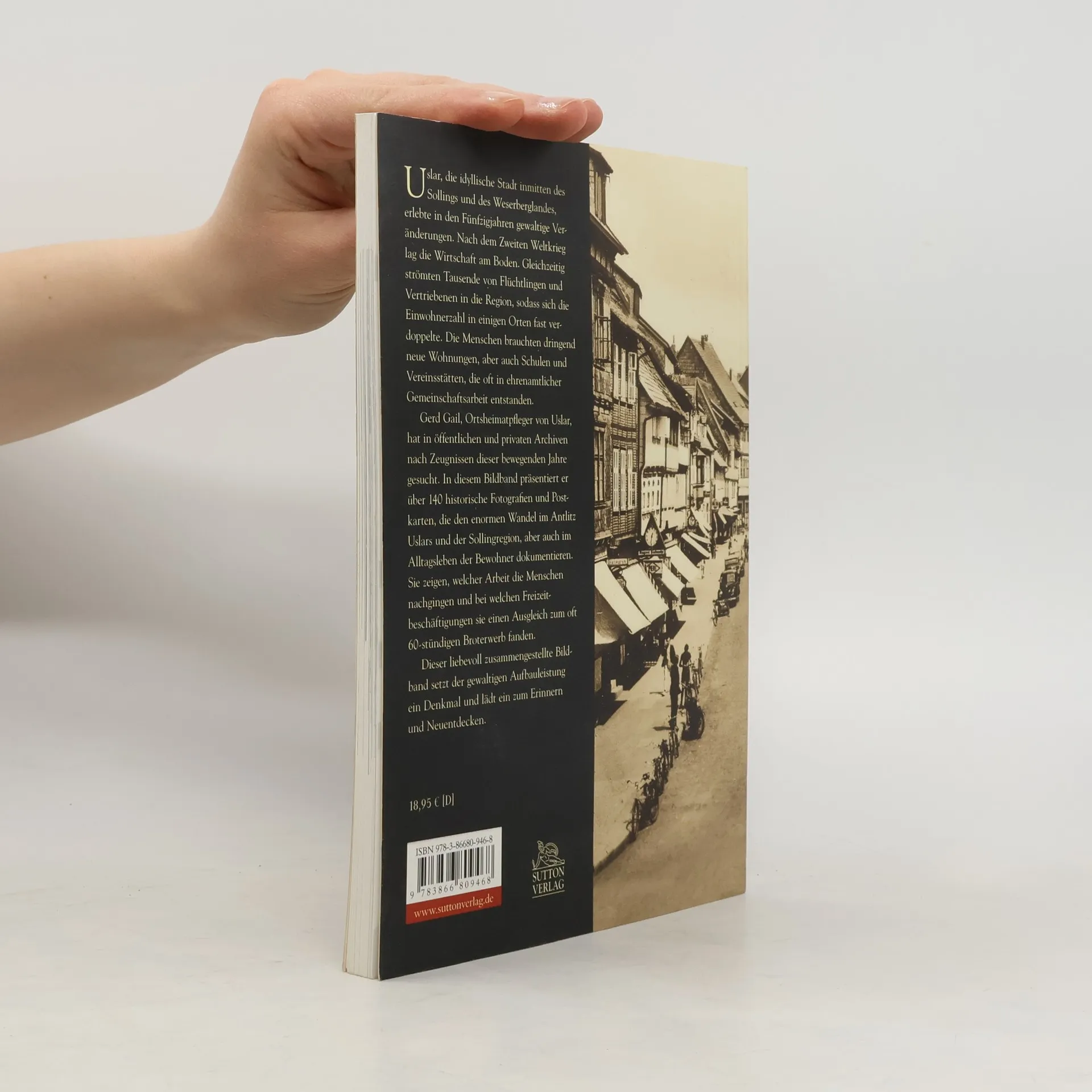 Uslar, die idyllische Stadt inmitten des Sollings und des Weserberglandes, erlebte in den Fünfzigjahren gewaltige Veränderungen. Nach dem Zweiten Weltkrieg lag die Wirtschaft am Boden. Gleichzeitig strömten Tausende von Flüchtlingen und Vertriebenen in die Region, sodass sich die Einwohnerzahl in einigen Orten fast verdoppelte. Die Menschen brauchten dringend neue Wohnungen, aber auch Schulen und Vereinsstätten, die oft in ehrenamtlicher Gemeinschaftsarbeit entstanden. Gerd Gail, Ortsheimatpfleger von Uslar, hat in öffentlichen und privaten Archiven nach Zeugnissen dieser bewegenden Jahre gesucht. In diesem Bildband präsentiert er über 140 historische Fotografien und Postkarten, die den enormen Wandel im Antlitz Uslars und der Sollingregion, aber auch im Alltagsleben der Bewohner dokumentieren. Sie zeigen, welcher Arbeit die Menschen nachgingen und bei welchen Freizeitbeschäftigungen sie einen Ausgleich zum oft 60-stündigen Broterwerb fanden. Dieser liebevoll zusammengestellte Bildband setzt der gewaltigen Aufbauleistung ein Denkmal und lädt ein zum Erinnern und Neuentdecken.