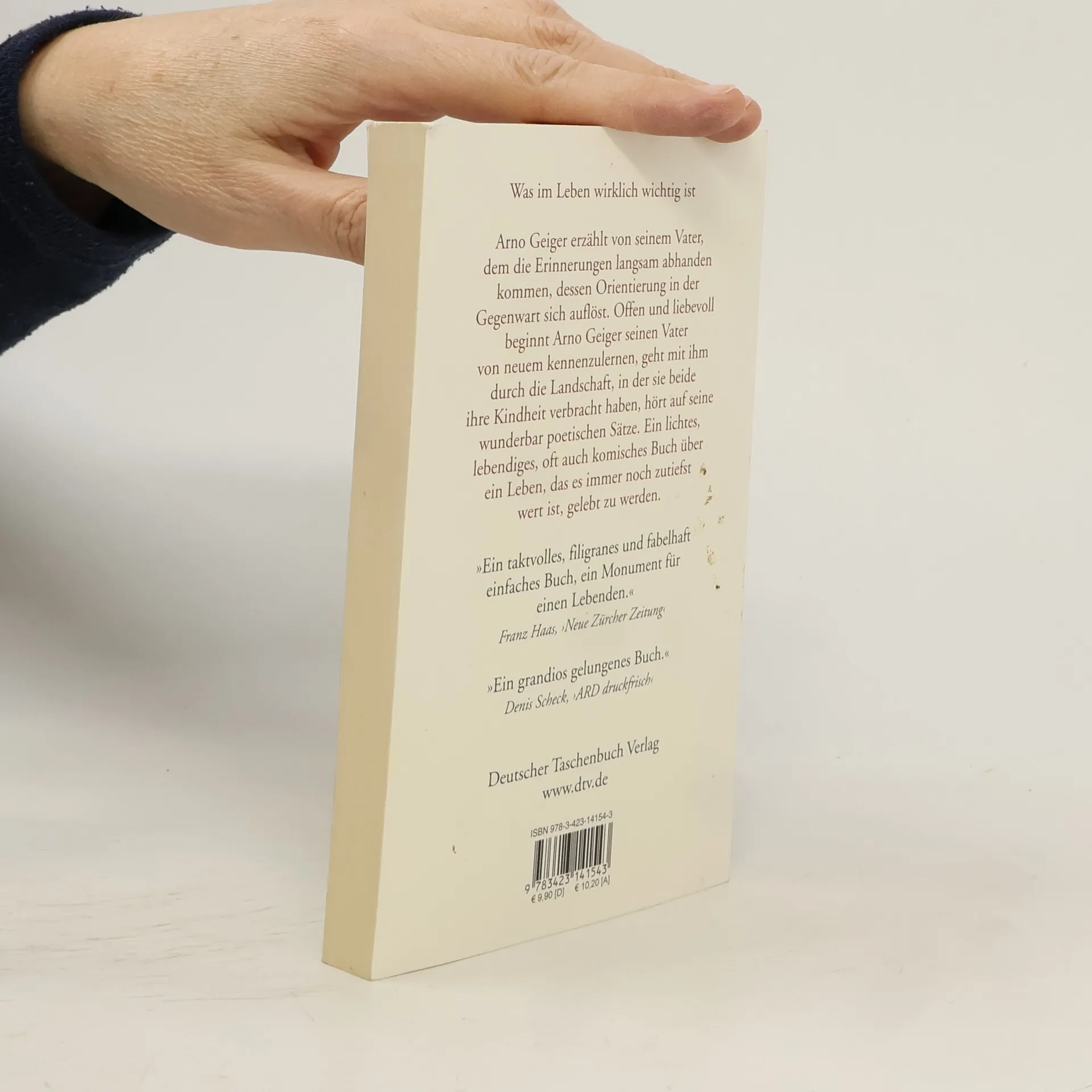 Was im Leben wirklich wichtig ist Arno Geiger hat ein äußerst berührendes Buch über seinen Vater geschrieben, der trotz seiner Alzheimerkrankheit mit Vitalität und Klugheit beeindruckt. Im Alltag ist der Vater oft hellwach, aber seine Vergangenheit, sein Haus und seine Kinder hat er vergessen. Arno Geiger erzählt, wie er nochmals Freundschaft mit seinem Vater schließt und ihn viele Jahre begleitet. Er entdeckt, dass es auch mit der Krankheit bei seinem Vater noch alles gibt: Charme, Witz, Selbstbewusstsein und Würde. Ein lebendiges, oft komisches Buch, das von einem Leben erzählt, das es immer noch zutiefst wert ist, gelebt zu werden.