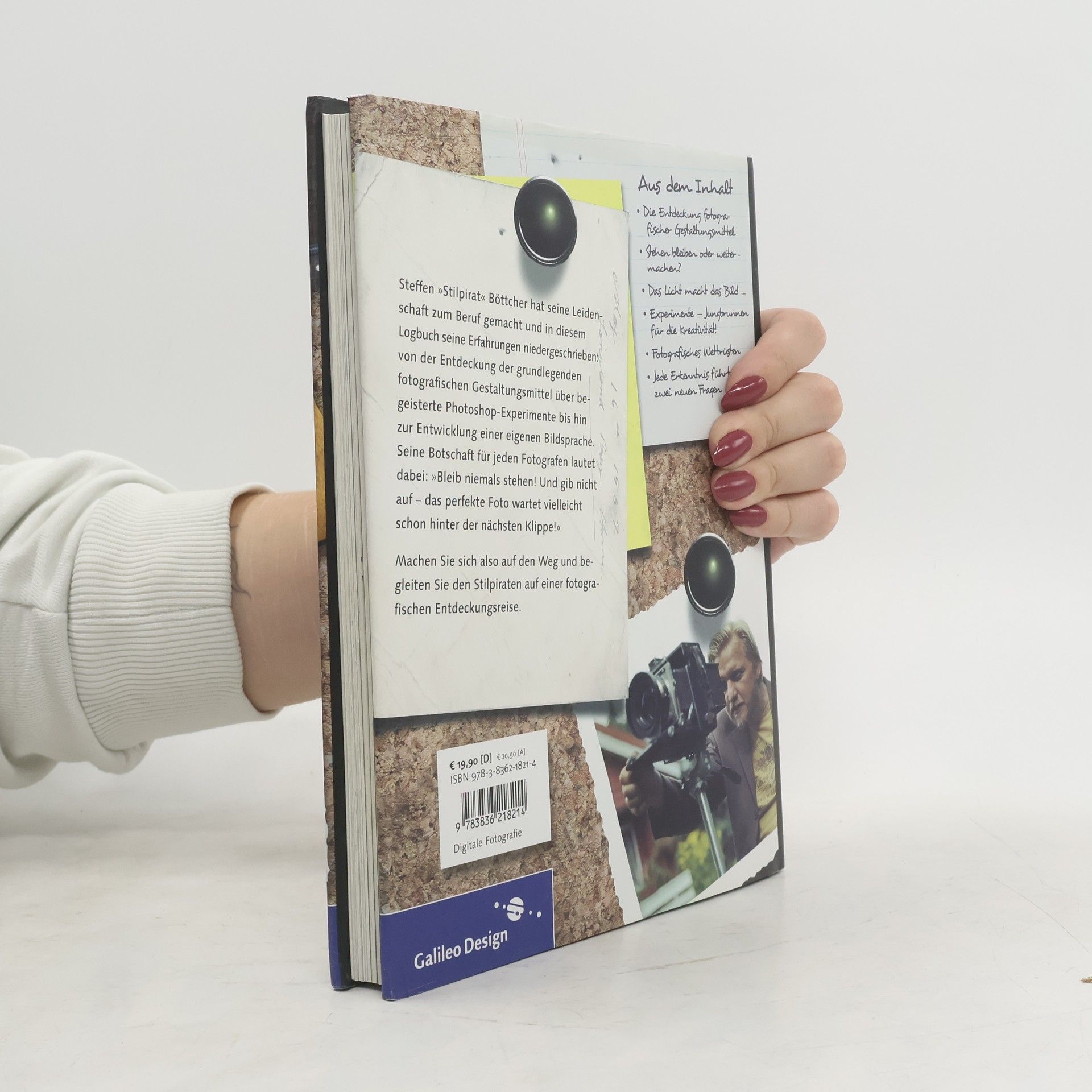 Wenn die Fotografie für Sie die schönste Nebensache der Welt ist, Sie die diebische Freude über das eine, unglaublich gute, hart erkämpfte oder glücklich in den Schoß gefallene Bild kennen, dann hat Sie der »Virus Fotografie« infiziert! Und dann ist dieses Buch genau richtig für Sie! Steffen »Stilpirat« Böttcher hat seine Leidenschaft zum Beruf gemacht und in diesem Logbuch seine Erfahrungen niedergeschrieben: von der Entdeckung der grundlegenden fotografischen Gestaltungsmittel über begeisterte Photoshop-Experimente bis hin zur Entwicklung einer eigenen Bildsprache. Die größte Herausforderung für jeden Fotografen lautet dabei: »Bleib niemals stehen! Und gib nicht auf – das perfekte Foto wartet vielleicht schon hinter der nächsten Klippe!« Machen Sie sich also auf den Weg und begleiten Sie den Stilpiraten auf einer fotografischen Entdeckungsreise! Aus dem Inhalt: Die Entdeckung fotografischer Gestaltungsmittel Stehen bleiben oder weitermachen? Das Licht macht das Bild … Experimente — Jungbrunnen für die Kreativität! Fotografisches Wettrüsten Jede Erkenntnis führt zu zwei neuen Fragen