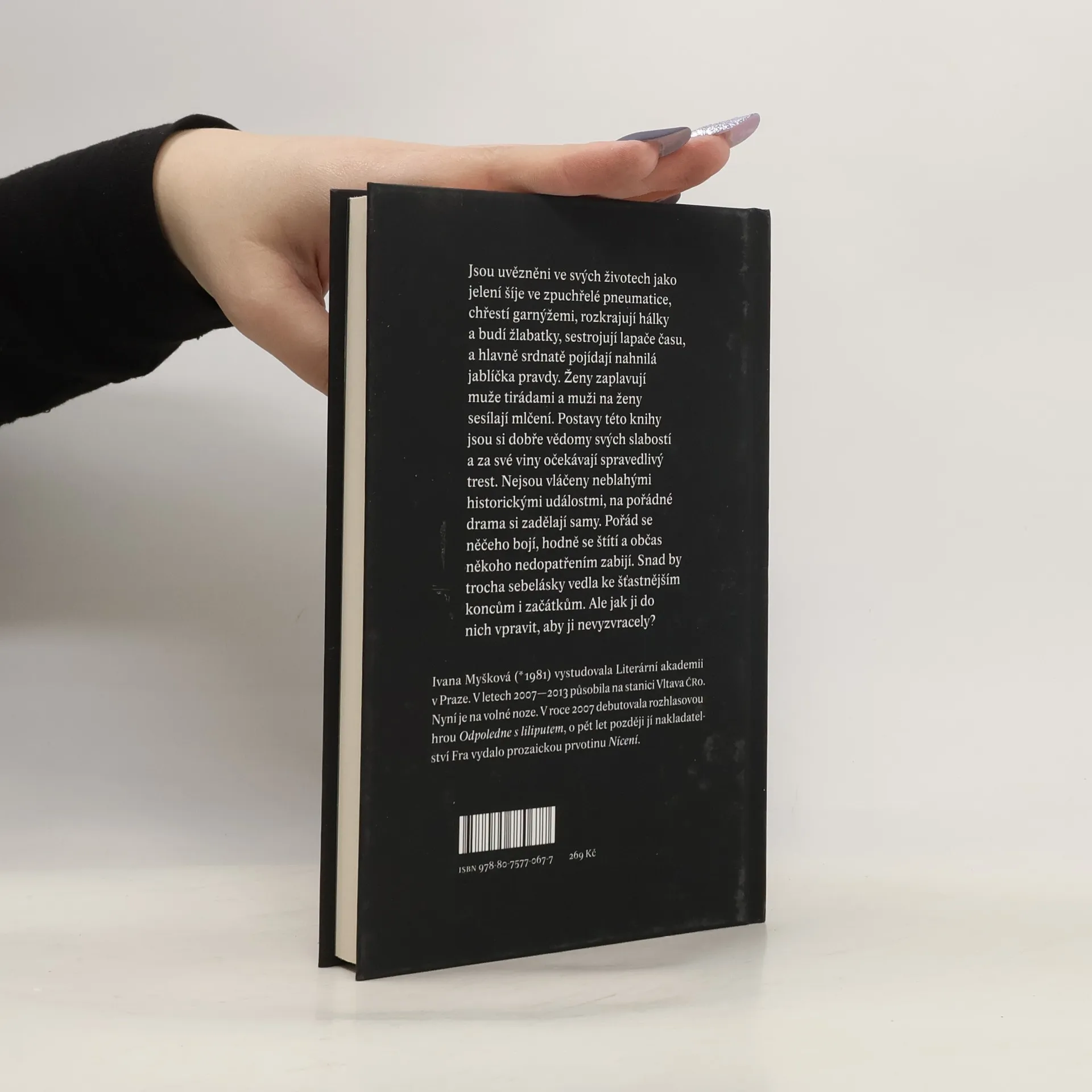 Postavy uvězněné ve svých životech jako jelení šíje ve zpuchřelé pneumatice. Chřestí garnýžemi, nosí si domů odstraňovače žmolků, sbírají vzorky vorvaního dechu, rozkrajují hálky a budí žlabatky, prokousávají se obludnými želatinovými medvědy, sestrojují lapače času, a hlavně srdnatě pojídají nahnilá jablíčka pravdy. Ženy zaplavují muže tirádami a muži ženy mlčením. Všichni jsou trochu nahluchlí a vychýlení z rovnováhy, tihle lidé možností, kteří čelí teroru nejednoznačnosti. Jsou si dobře vědomi svých slabostí, vad a chyb a očekávají za své viny spravedlivý trest v podobě klíče zmizelého pod podšívkou, pádu do vnitrobloku, vyhození z bytu vlastním hostem nebo znásilnění. Jestliže se Ivana Myšková v ceněné prozaické prvotině Nícení soustředila hlavně na co nejpřesnější zprostředkování zjitřených stavů hlavní protagonistky, tyto vytříbené povídky působí příběhověji a čiší z nich radost z fabulace. Jestliže byl literární jazyk Nícení cudný a současně ohýbaný až k zaumnosti, tady je Myšková věcnější, cyničtější a občas mravenčivě nemravná.