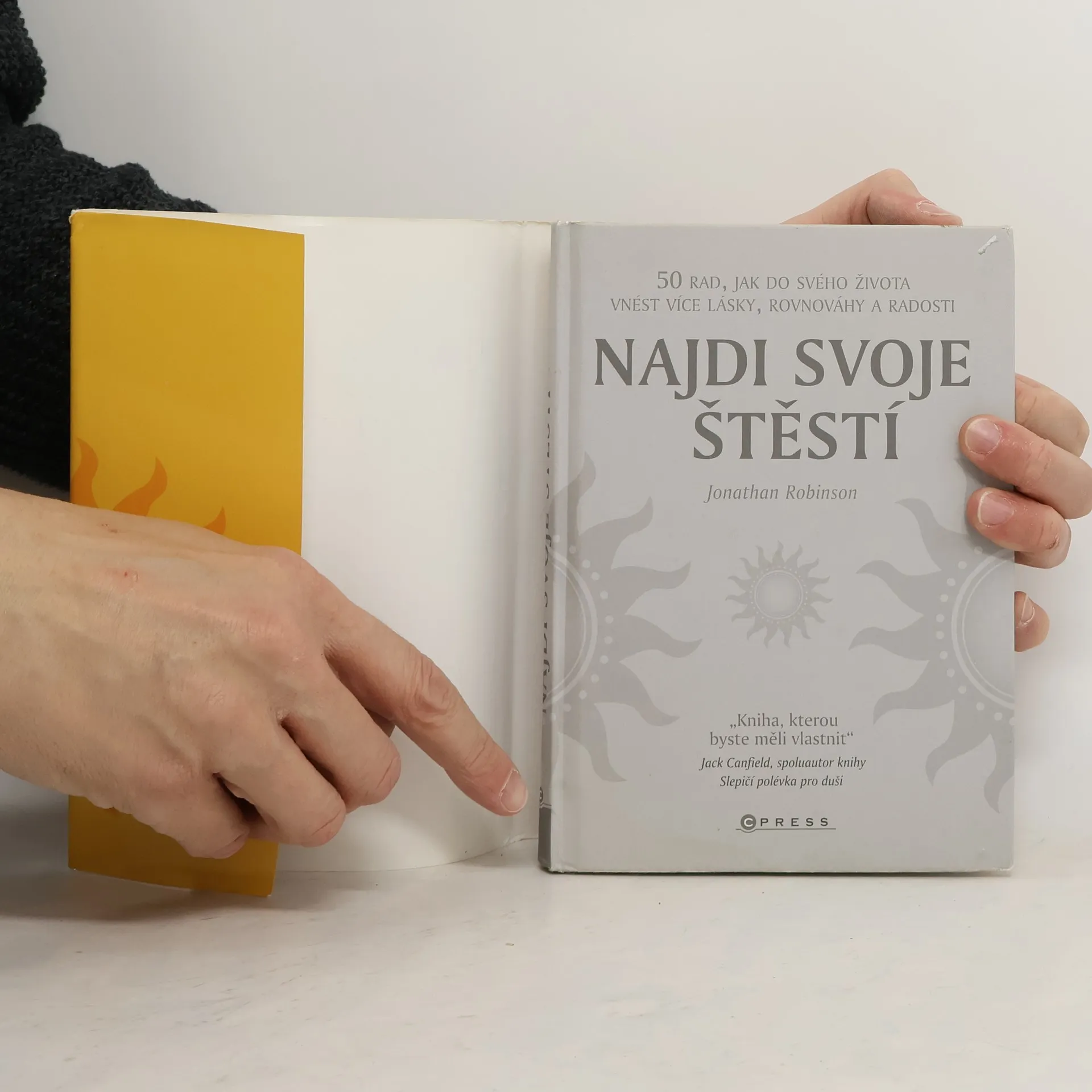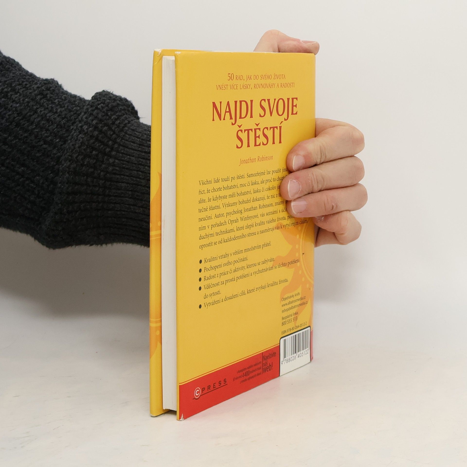 Všichni lidé touží po štěstí. Samozřejmě lze použít jiná slova, můžete říct, že chcete bohatství, moc či lásku, ale proč to chcete? Protože si myslíte, že kdybyste měli bohatství, lásku či cokoliv jiného, byli byste skutečně šťastní. Výzkumy bohužel dokazují, že nic z toho vás šťastnějšími neučiní. Autor, psycholog Jonathan Robinson, známý svým účinkováním v pořadech Oprah Winfreyové, vás seznámí s účinnými a jednoduchými technikami, které zlepší kvalitu vašeho života a nasměrují vás k vytyčeným cílům. 1. Kvalitní vztahy s větším množstvím přátel. 2. Pochopení svého počínání 3. Radost z práce či aktivity, kterou se zabýváte. 4. Vděčnost za prostá potěšení a vychutnávání si těchto potěšení do sytosti. 5. Vytváření a dosažení cílů, které zvyšují kvalitu života.