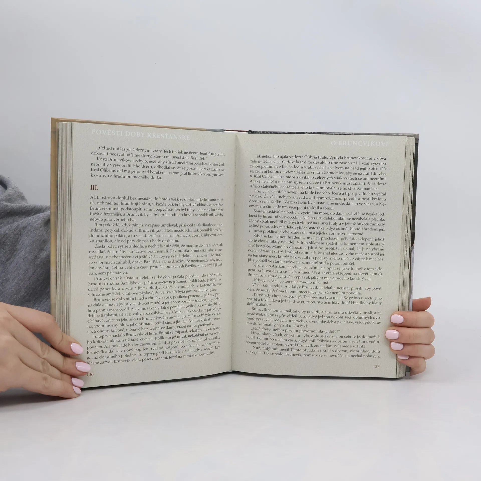 Poslyšte o našem praotci, o předcích, jak přišli do končin naší vlasti a usadili se po Labi a po Vltavě i po jiných řekách této země. Slyšte i, co více dochovalo se z temnoty věků, co zůstalo z báječných vypravování přešlých pokolení, jež klaněla se bohům v šeru starých hájů a jež obětovala studánkám v tichých ouvalech, jezerům i řekám i svatému, živému ohni ... Pojďte a poslyšte pověsti dávných časů...