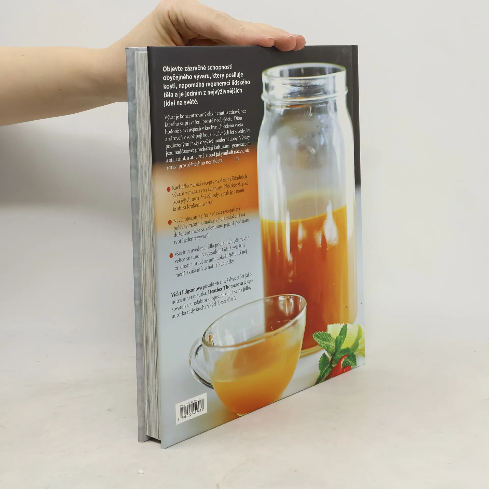 Objevte zázračné schopnosti obyčejného vývaru, který posiluje kosti, napomáhá regeneraci lidského těla a je jedním z nejvýživnějších jídel na světě. Vývar je koncentrovaný elixír chuti a zdraví, bez kterého se při vaření prostě neobejdete. Dlouhodobě slaví úspěch v kuchyních celého světa a zároveň v sobě pojí kouzlo dávných let s vědecky podloženými fakty o výživě moderní doby. Vývary jsou nadčasové; procházejí kulturami, generacemi a staletími, a ať je znáte pod jakýmikoli názvy, nic zdraví prospěšnějšího nenajdete. Kuchařka nabízí recepty na deset základních vývarů z masa, ryb i zeleniny. Přečtěte si, jaké jsou jejich nutriční výhody, a pak je s knihou krok za krokem uvařte! Navíc obsahuje přes padesát receptů na polévky, rizota, omáčky a jídla založená na dušeném mase se zeleninou, jejichž podstatu tvoří jeden z vývarů. Všechna uvedená jídla lze připravit velice snadno. Recepty nevyžadují žádné zvláštní znalosti a snadno se jimi dokáží řídit i ti nejméně zkušení kuchaři a kuchařky.