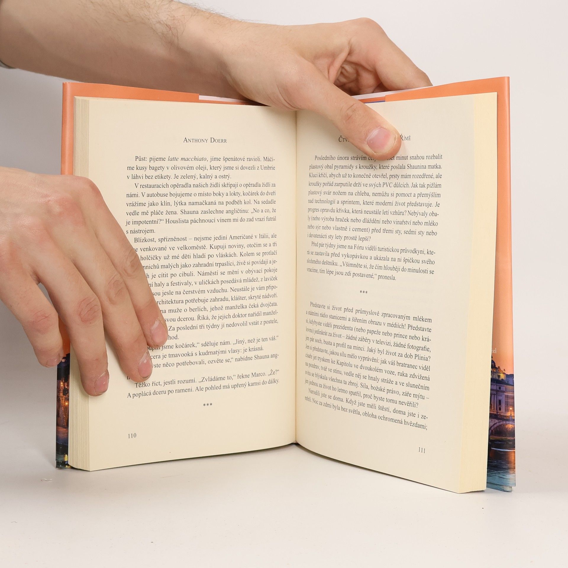 Výjimečná kniha – je plná mimořádných postřehů a popisuje Doerrova dobrodružství v jednom z nejúchvatnějších měst na světě. Anthony čte Plinia, Danta a Keatse ‒ staré kronikáře Říma ‒ a navštěvuje náměstí, chrámy a pamětihodnosti, o kterých tito muži psali. Účastní se vigilie umírajícího Jana Pavla II. a v prosinci vezme svá dvojčata do Pantheonu, aby jim ukázal, jak dovnitř okulem padá sníh. Společně se svojí rodinou se spřátelí s místními řezníky, zelináři a pekaři, jejichž hlučné příběhy a osobité výchovné rady jsou stejně neodolatelné jako samotný Řím. Tato osobní kniha odhaluje mnohé, je oslavou Říma, úžasným novým pohledem na rodičovství a úchvatným příběhem spisovatelského řemesla ‒ díky němuž Doerr přetváří své zážitky a zkušenosti do vět.