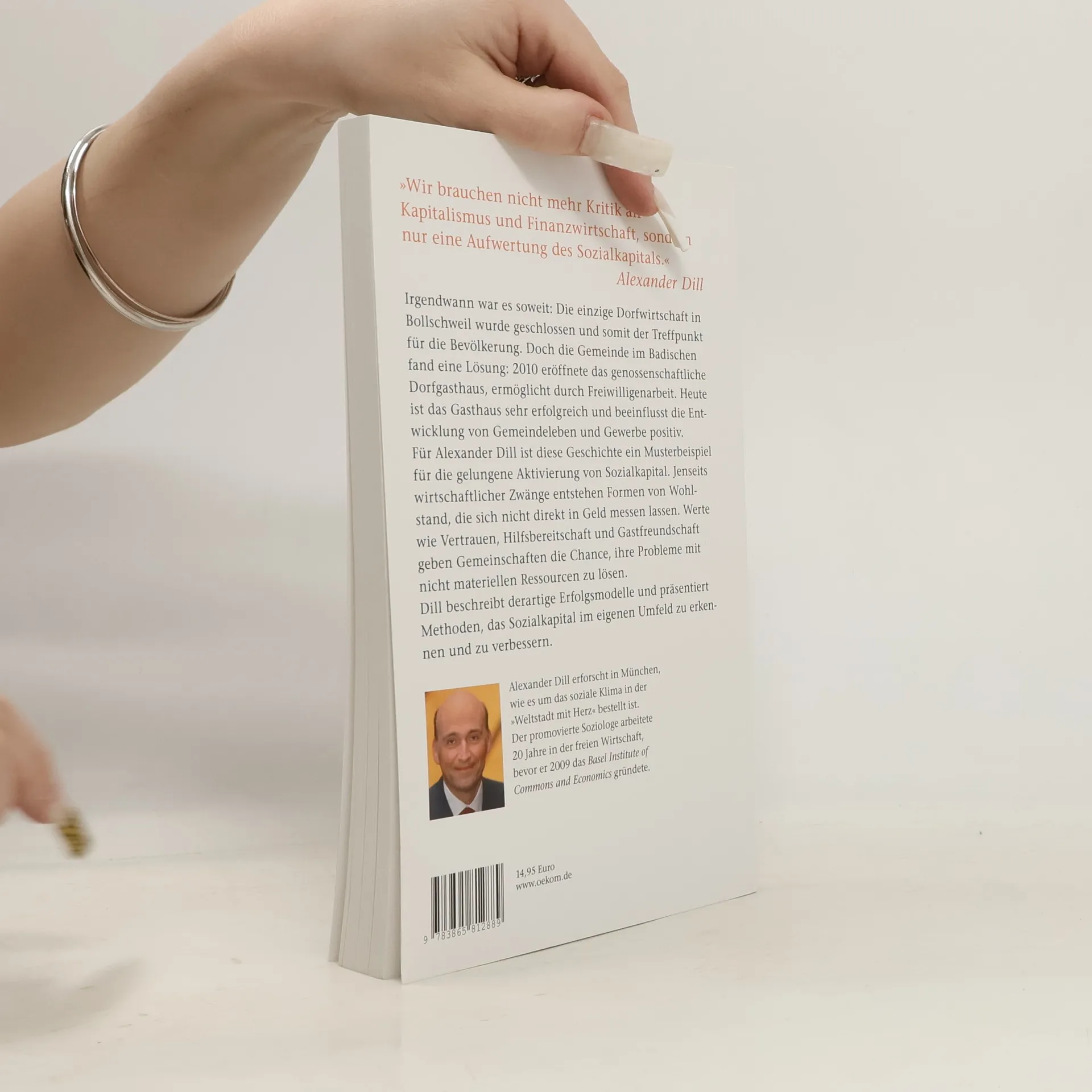 Irgendwann war es soweit: Die einzige Dorfwirtschaft von Bollschweil wurde geschlossen und somit der Treffpunkt für die Bevölkerung. Doch die Gemeinde im Badischen fand eine Lösung: 2010 eröffnete das genossenschaftliche Dorfgasthaus, ermöglicht durch Freiwilligenarbeit. Heute ist das Gasthaus sehr erfolgreich und beeinflusst die Entwicklung von Gemeindeleben und Gewerbe positiv. Für Alexander Dill ein Musterbeispiel für die gelungene Aktivierung von Sozialkapital. Jenseits wirtschaftlicher Zwänge entstehen Formen von Wohlstand, die sich nicht direkt in Geld messen lassen. Werte wie Vertrauen, Hilfsbereitschaft und Ehrenamt geben Gemeinschaften so die Chance, ihre Probleme mit nichtmateriellen Ressourcen zu lösen. Dill plädiert für eine neue Gemeingüterwirtschaft, beschreibt Erfolgsgeschichten und präsentiert Methoden, das Sozialkapital im eigenen Umfeld zu erkennen und zu verbessern.