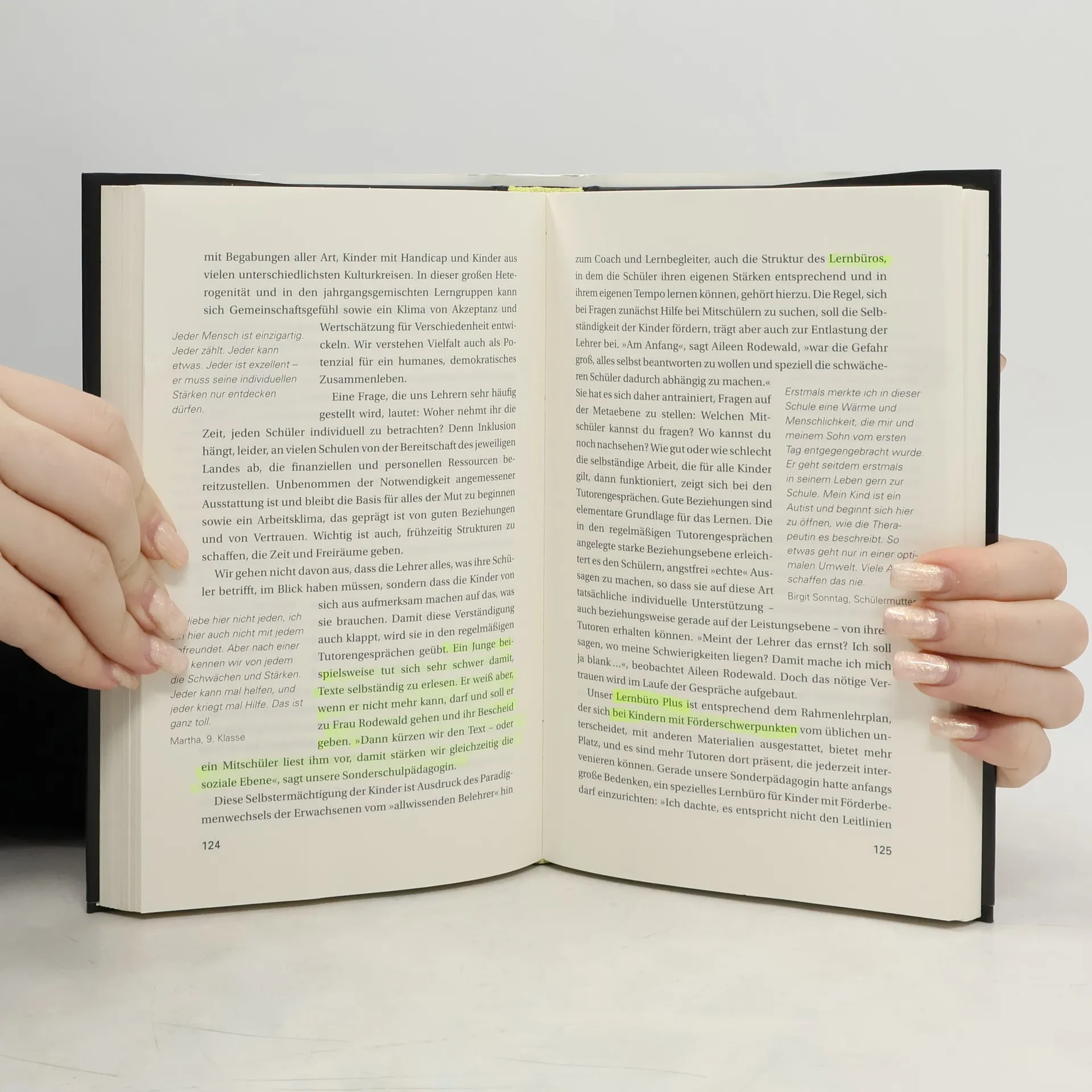 Erziehungsbücher gibt es viele – Ratgeber, Katastrophenhelfer, Theorien. Dieses Buch ist von einer der erfolgreichsten Praktikerinnen Deutschlands geschrieben worden: direkt aus der Kampfzone Schule. Eine ganz normale Schule in Berlin-Mitte ist zu einer Modellschule geworden. Was ist passiert? An der Gemeinschaftsschule Berlin-Zentrum spielen nicht die Lehrer die Hauptrolle, sondern die Schüler. Sie übernehmen Verantwortung – angefangen mit der Frage, was sie wann und wie lernen, bis zur Übernahme von Verantwortung für die Gesellschaft. Das Lernen erfolgt in Lernteams, die Schüler organisieren sich die dafür erforderlichen Materialien selbst aus den `Lernbüros´ an der Schule. Die Lehrer begleiten die Prozesse als Tutoren, sie sind nicht mehr die alles dominierenden Studienräte von früher. Margret Rasfeld und Peter Spiegel erläutern ihre Prinzipien, ihre Schul-Philosophie und deren Umsetzung und vergleichen sie mit den innovativen Bildungsprojekten in der Welt. Sie machen Mut zu einer Bildungsrevolution in Deutschland.