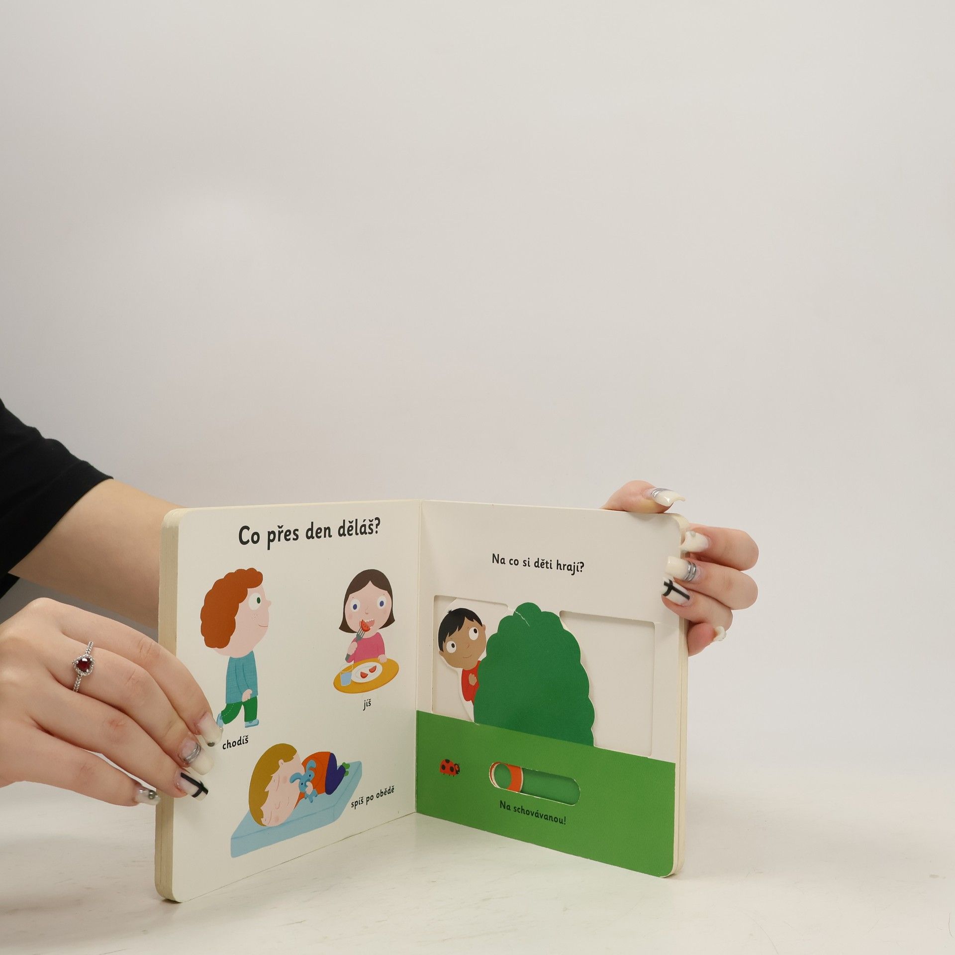 Objevovat svět lidského těla s tímto leporelem je tak zábavné! Co všechno přes den děláš? Kdo si hraje na dětském hřišti? Komu dává chlapeček pusinku? Stačí jen vložit prstík do správného otvoru a lehce vysunout, zatáhnout nebo otočit ve směru šipky a hned bude váš malý objevitel znát odpovědi. Leporelo je určeno pro nejmenší děti od jednoho roku a má pevné stránky s posuvnými a otočnými prvky, a tak si naši nejmenší mohou při prohlížení a učení jednotlivých částí těla, pojmenovávání pocitů a mnoha dalšího procvičit i jemnou motoriku.