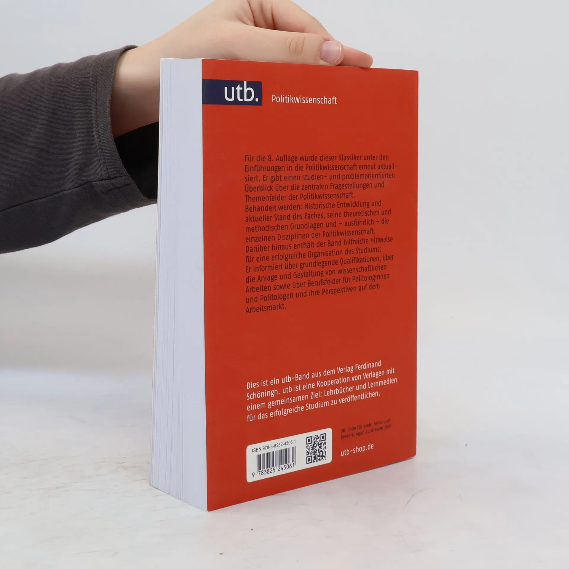 Für die 8. Auflage wurde dieser Klassiker unter den Einführungen in die Politikwissenschaft erneut aktualisiert. Er gibt einen studien- und problemorientierten Überblick über die zentralen Fragestellungen und Themenfelder der Politikwissenschaft. Behandelt werden: Historische Entwicklung und aktueller Stand des Faches, seine theoretischen und methodischen Grundlagen und – ausführlich – die einzelnen Disziplinen der Politikwissenschaft. Darüber hinaus enthält der Band hilfreiche Hinweise für eine erfolgreiche Organisation des Studiums: Er informiert über grundlegende Qualifikationen, über die Anlage und Gestaltung von wissenschaftlichen Arbeiten sowie über Berufsfelder für Politologinnen und Politologen und ihre Perspektiven auf dem Arbeitsmarkt.