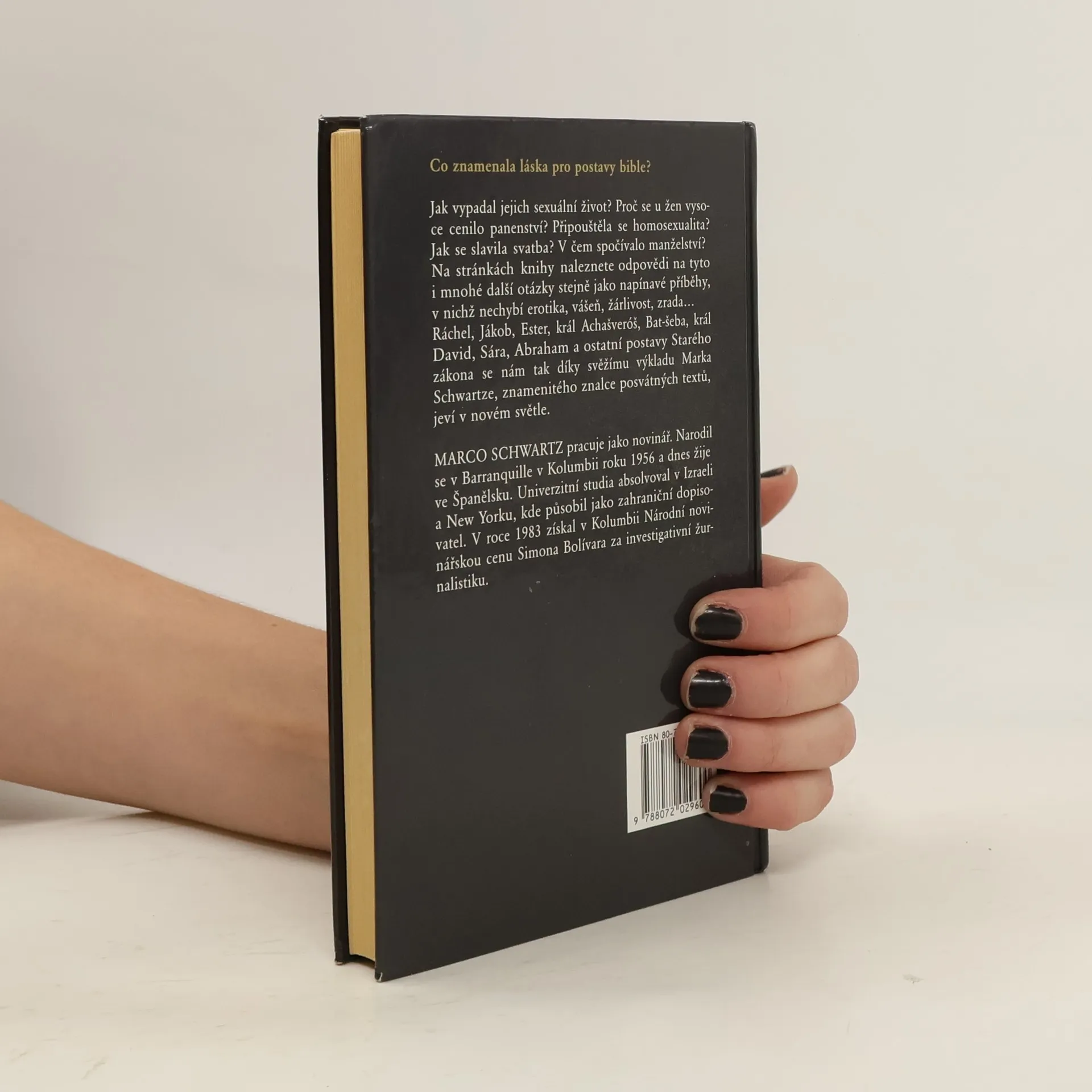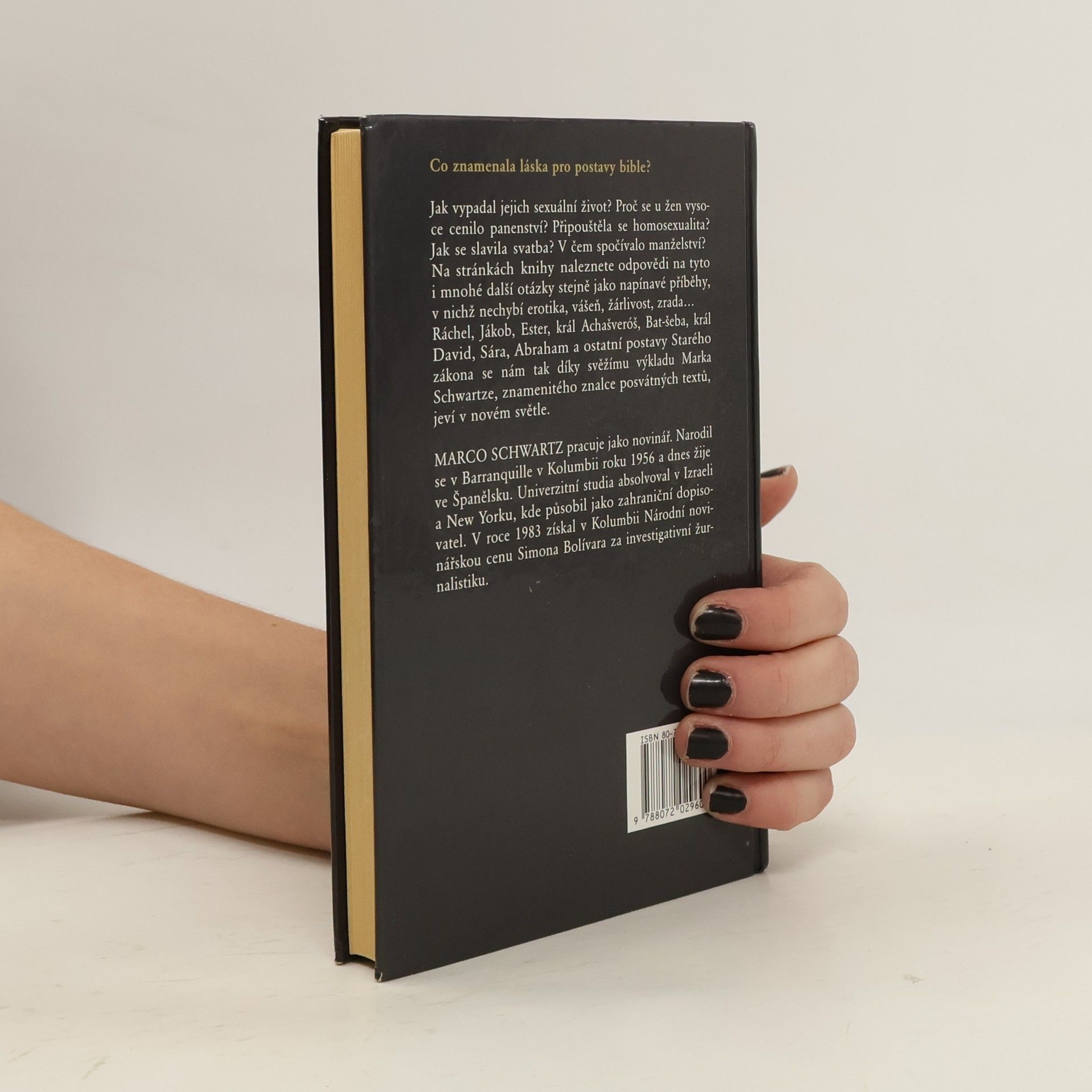 Co znamenala láska pro postavy bible? Jak vypadal jejich sexuální život? Proč se u žen vysoce cenilo panenství? Připouštěla se homosexualita? Jak se slavila svatba? V čem spočívalo manželství? Na stránkách knihy naleznete odpovědi na tyto i mnohé další otázky stejně jako napínave příběhy, v nichž nechybí erotika, vášeň, žárlivost, zrada... Ráchel, Jákob, Ester, král Achašveróš, Batšeba, král David, Sára, Abraham a ostatní postavy Starého zákona se nám tak díky svěžímu výkladu Marka Schwartze, znamenitého znalce posvátných textů, jeví v novém světle. Vydání první