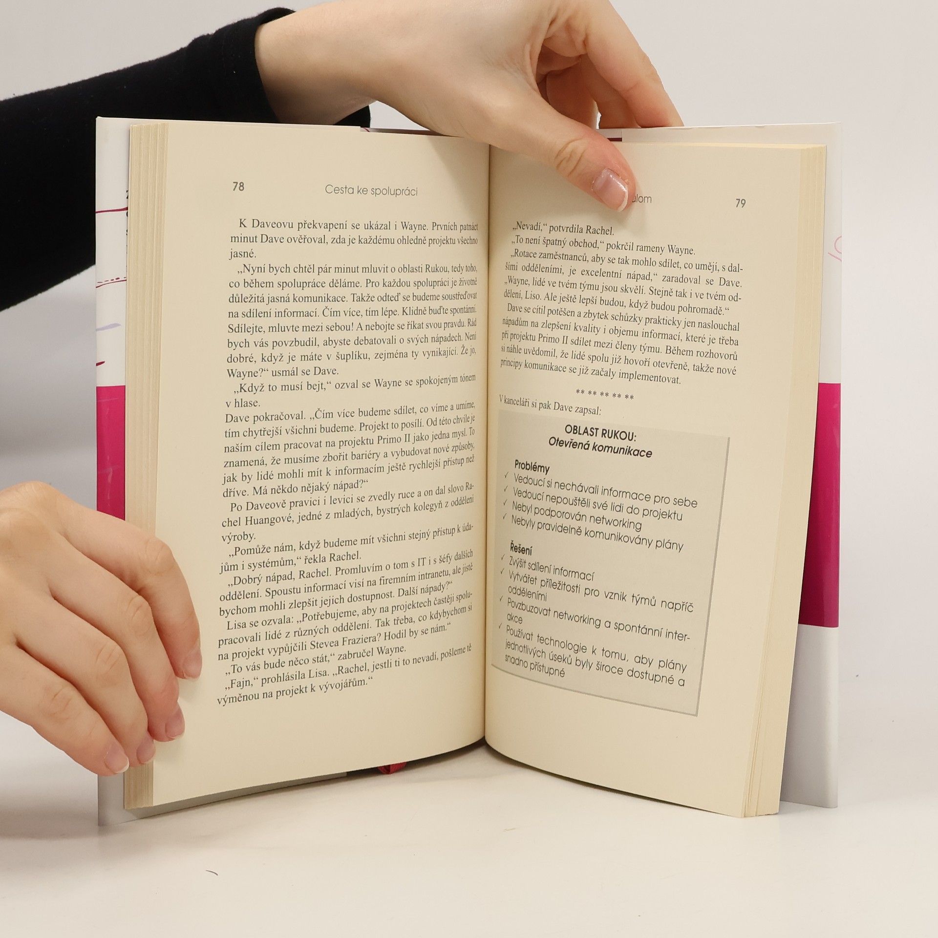 Každý ví, že dobrá spolupráce je základem vysoce výkonných týmů a organizací. Přesto se to často nepodaří. Protože lidé a skupiny často nespolupracují tak, jak by měli, jeden člen týmu neví, co dělá druhý, různá oddělení mezi sebou špatně komunikují. Tato kniha ukazuje, jak se to dá změnit. Každý musí začít u svého srdce (kdo jsem) a hlavy (co vím a čemu věřím). Pak se dostáváme k rukám (co dělám). Autoři poskytují rady, jak rozvíjet kvalitní spolupráci. Měli byste využívat rozdíly mezi jednotlivými členy týmu, pečovat o důvěru, stanovit jasné vize a cíle, mluvit otevřeně a pomáhat sobě i ostatním. Když se podaří rozpoznat chyby a nedostatky a odstranit je, příznivě se to promítne do úspěchů a výsledků na všech úrovních.