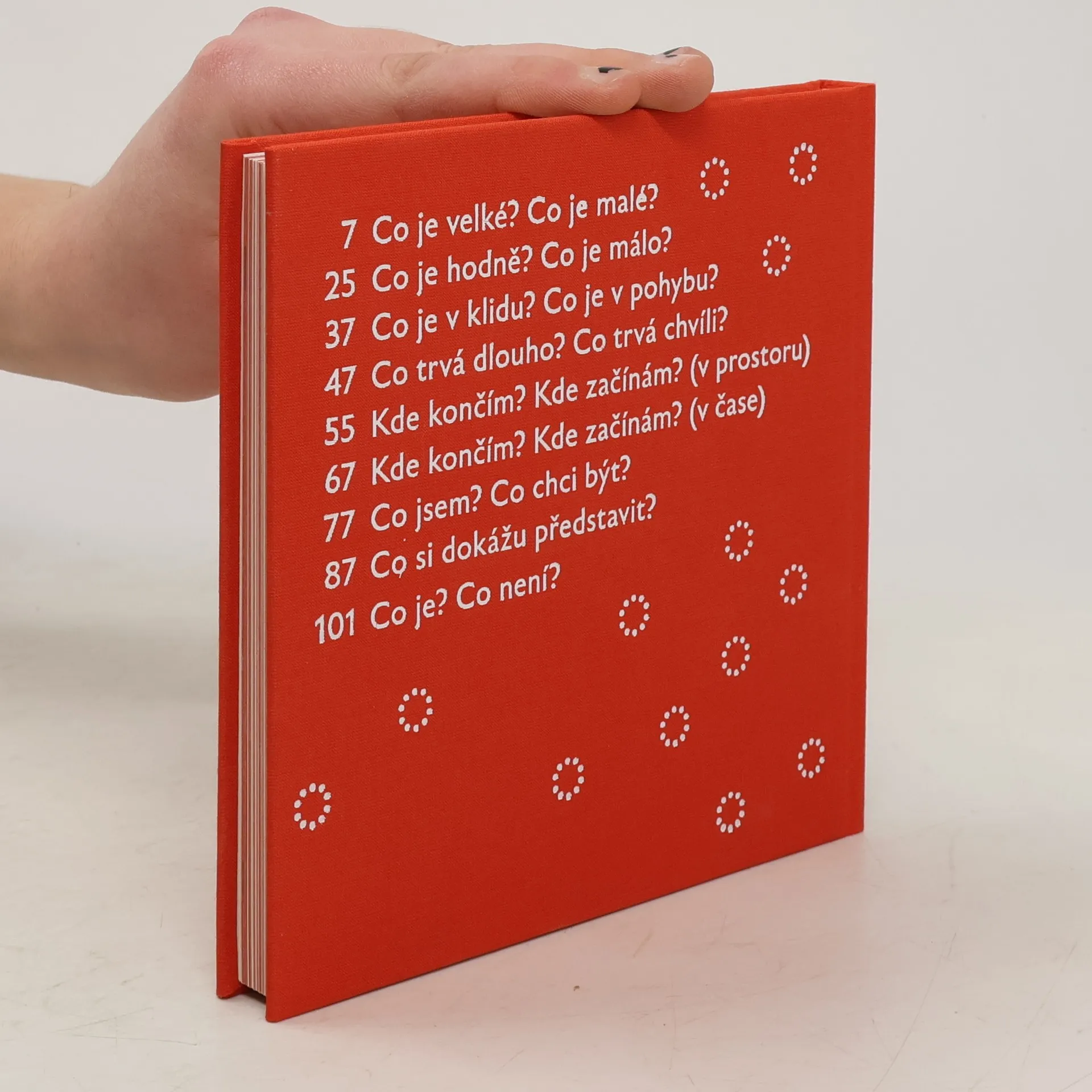 Co je velké a co je malé? Kdo jsi ty a kdo jsem já? Kde končím a kde začínám? Co je chvíle a co je dlouho? Existuje příběh, ve kterém se vůbec nic neděje? Když si něco představíš, může to být? Můžeš být zároveň malý a velký? Můžeš být zároveň součást něčeho a zároveň sám o sobě? Pro někoho jsou to legrační otázky a představy dětí, ale autorka Pohádek o kolečkách a nekonečnu na ně seriózně odpovídá. Ani dospělí přece nevědí, co je nekonečně malé nebo nekonečně velké, nekonečně mnoho, nekonečně rychle nebo nekonečně možné nebo nemožné. Pojďte si o tom s dětmi povídat.